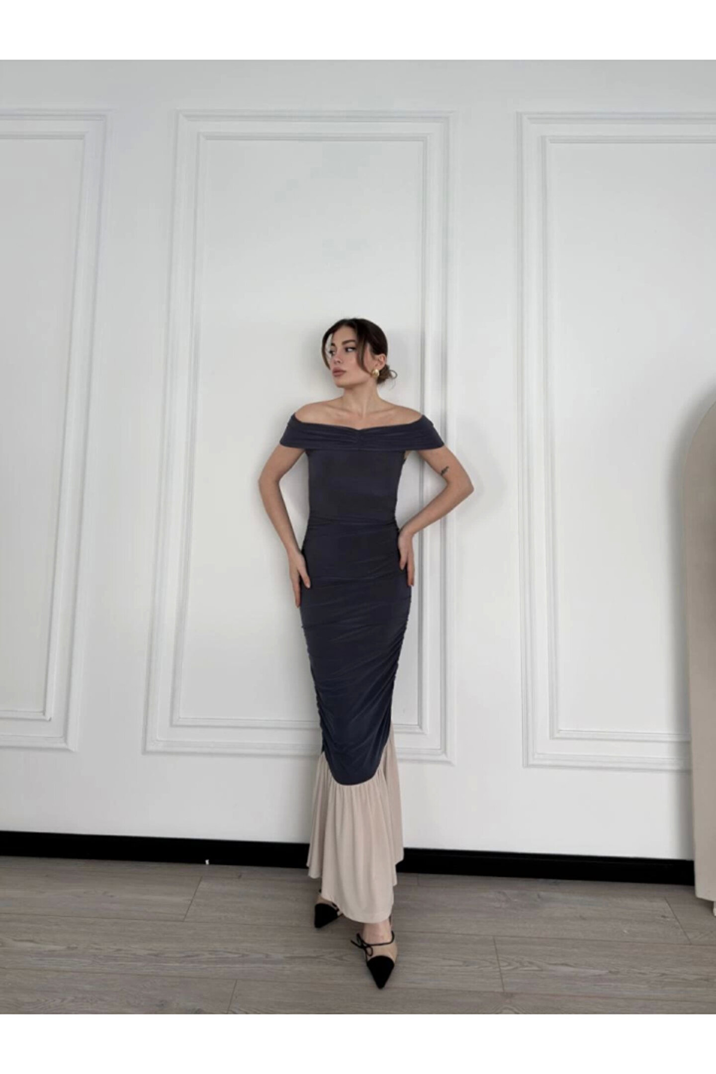 EYCAWEAR Striptiz Omuzlu Uzun Elbise- Füme