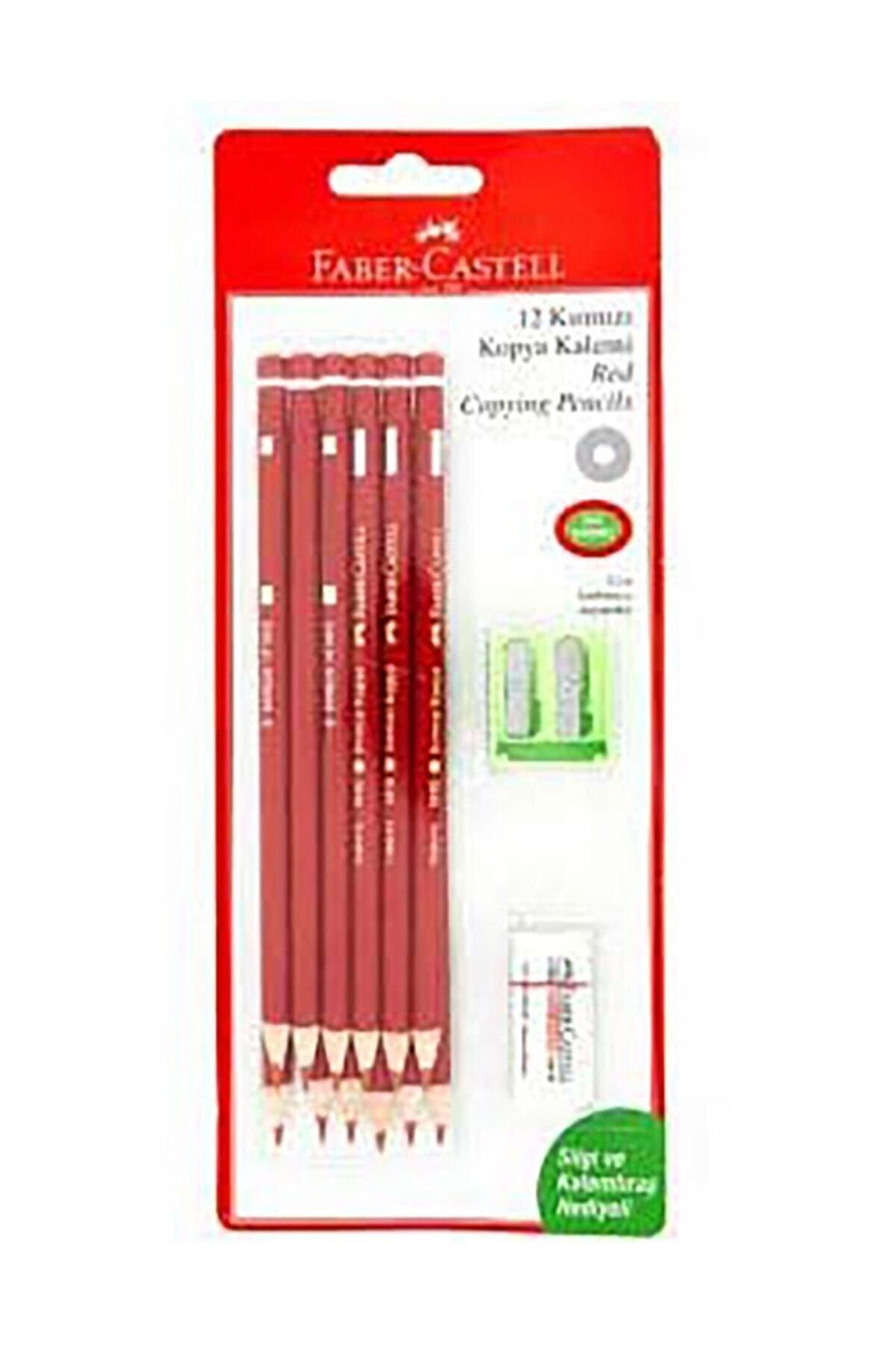12 Kırmızı Kopya Kalemi Silgi ve Kalemtraş