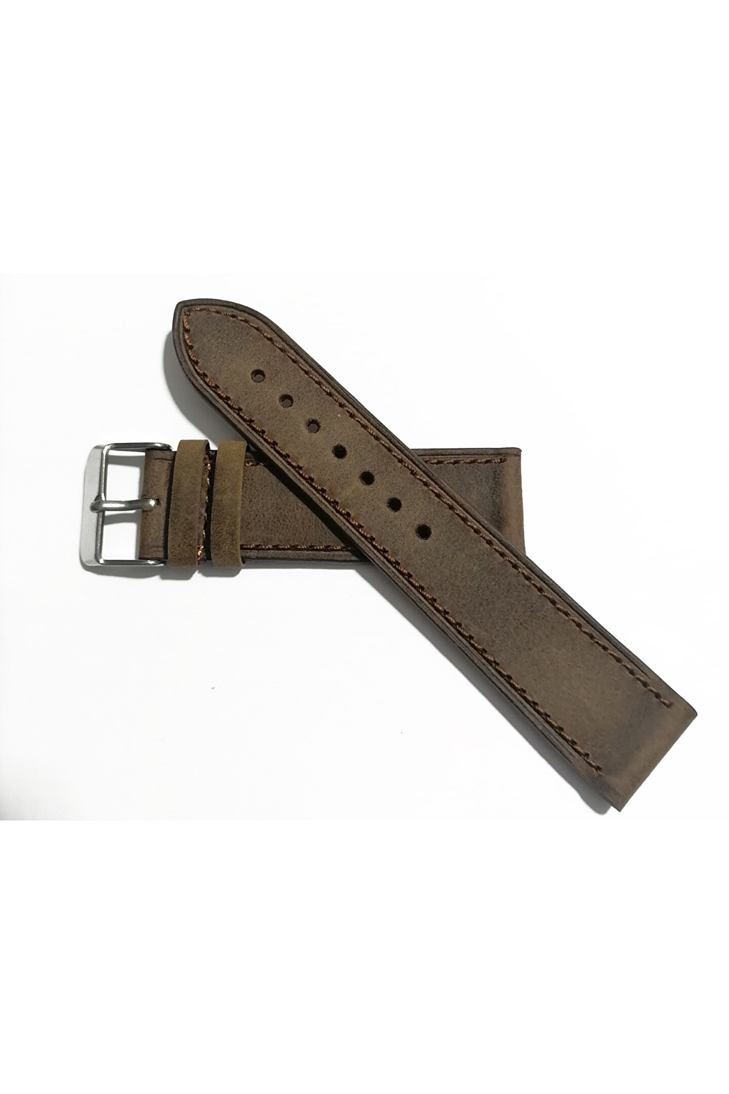 Fossil &Her Saate Uyumlu Kahverengi Dikişli 20 mm grizi deri