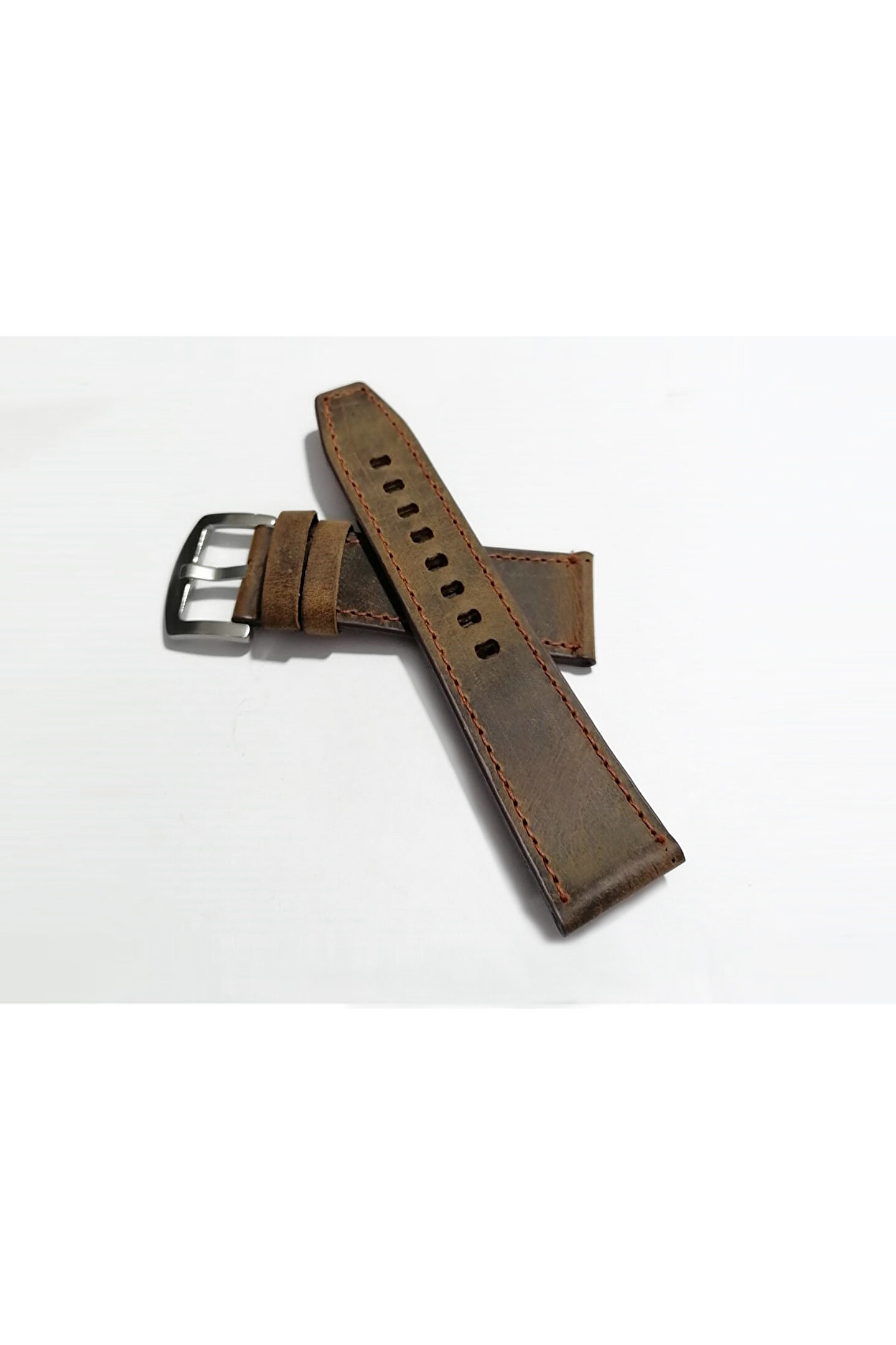 Fado Greyzi Deri Fosil & Her Saate Uygun Saat Kordonu 24 mm kahve (135 )
