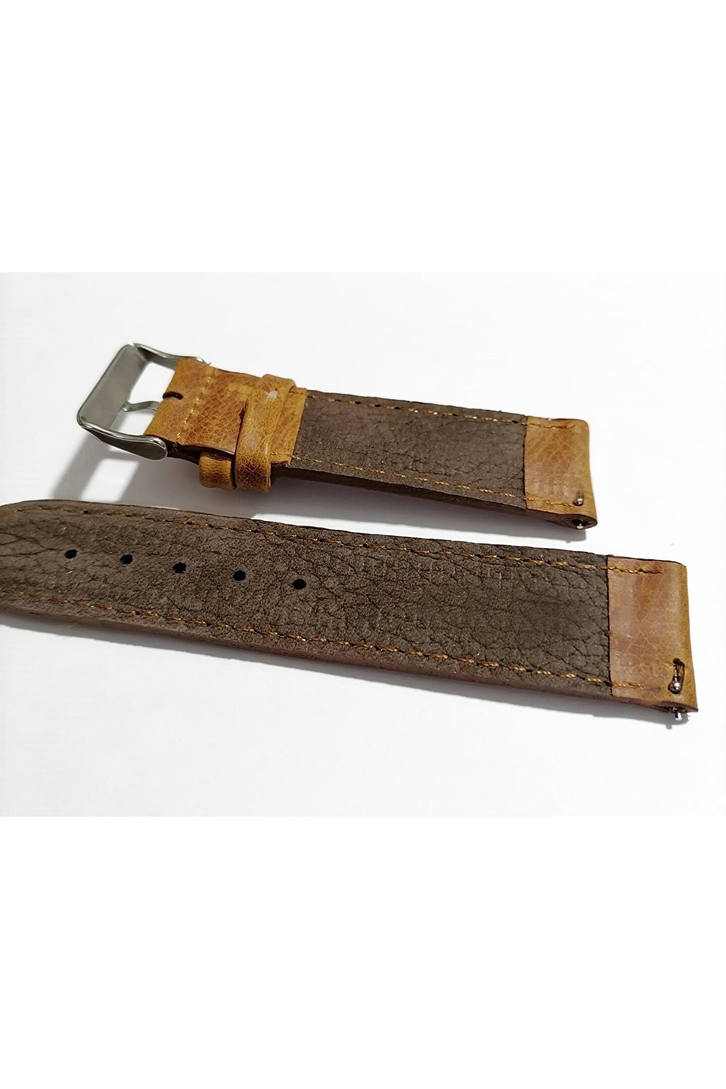 Fado Her Saate Uygun Bombeli 22 mm Hakiki Deri Kordon Akıllı Pimli TABA (208)