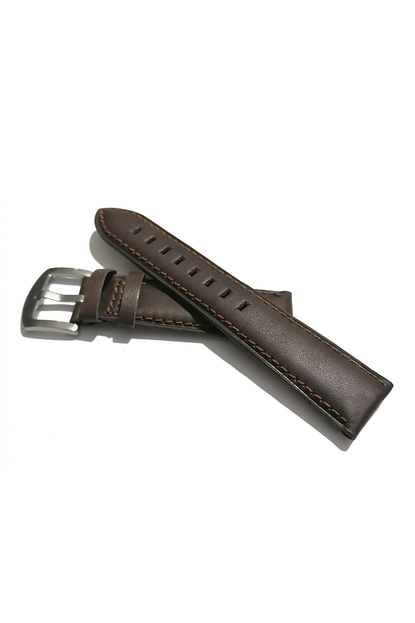 Fado&Her Saate Uyumlu Hakiki Kahverengi Düz Deri Saat Kordonu 24 mm (62 )