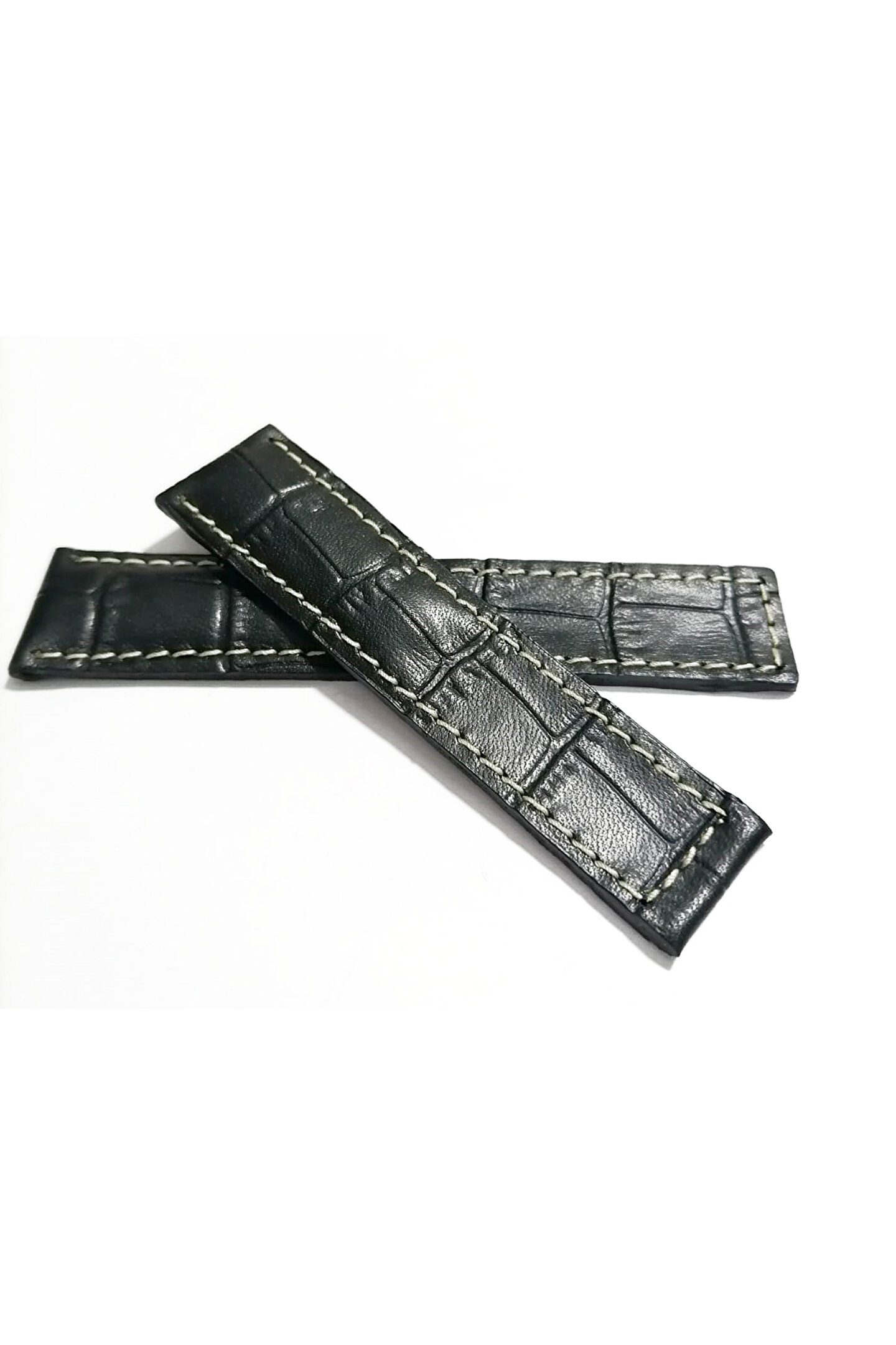 Tag-heuer Uyumlu 22-20 Beyaz Dikişli Siyah Hakiki dana derisi (25 )