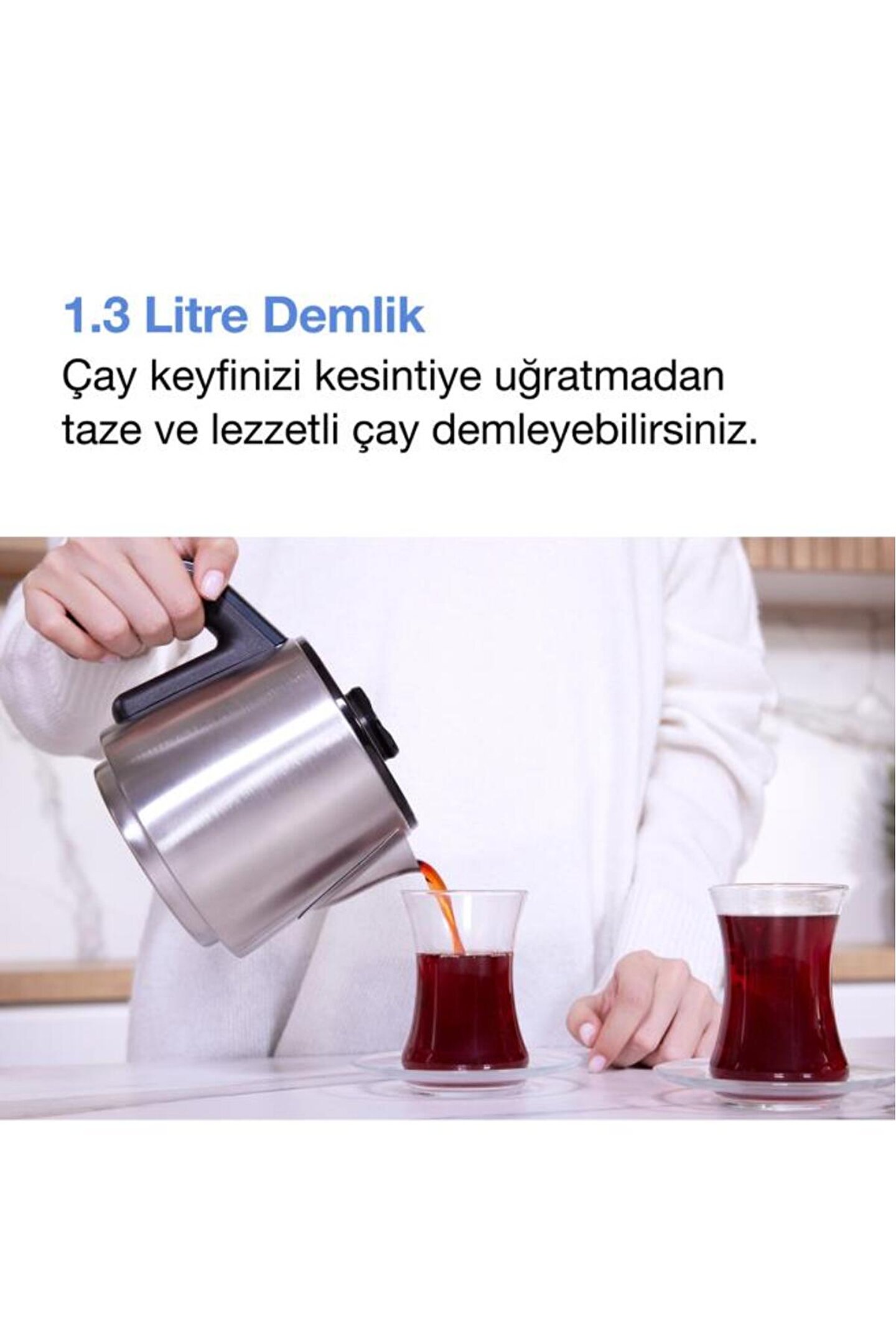 Gelişmiş susuz çalışmayı önleyen sistemi ile su seviyesi düştüğünde otomatik olarak kendini kapatan Chailand Çay Makinesi; size güvenli bir kullanım sunar. 1.3 L yüksek kapasiteli demliği ile kalabalık misafir gruplarınızla bile taptaze çay keyfini çıkarabilirsiniz.