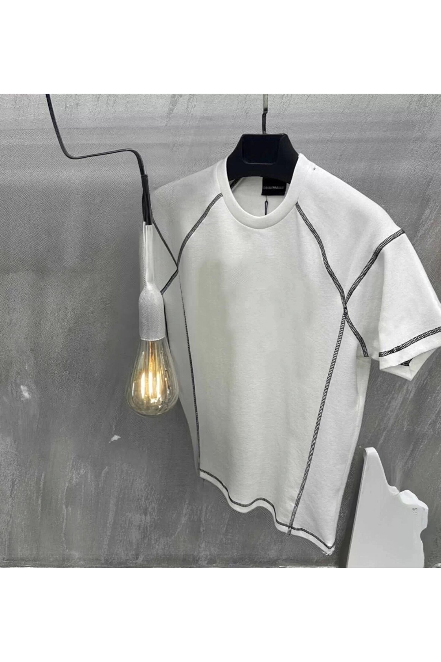 FantaziAtölyesi Unisex Karoyaka Dikişli Oversize T-Shirt - Beyaz