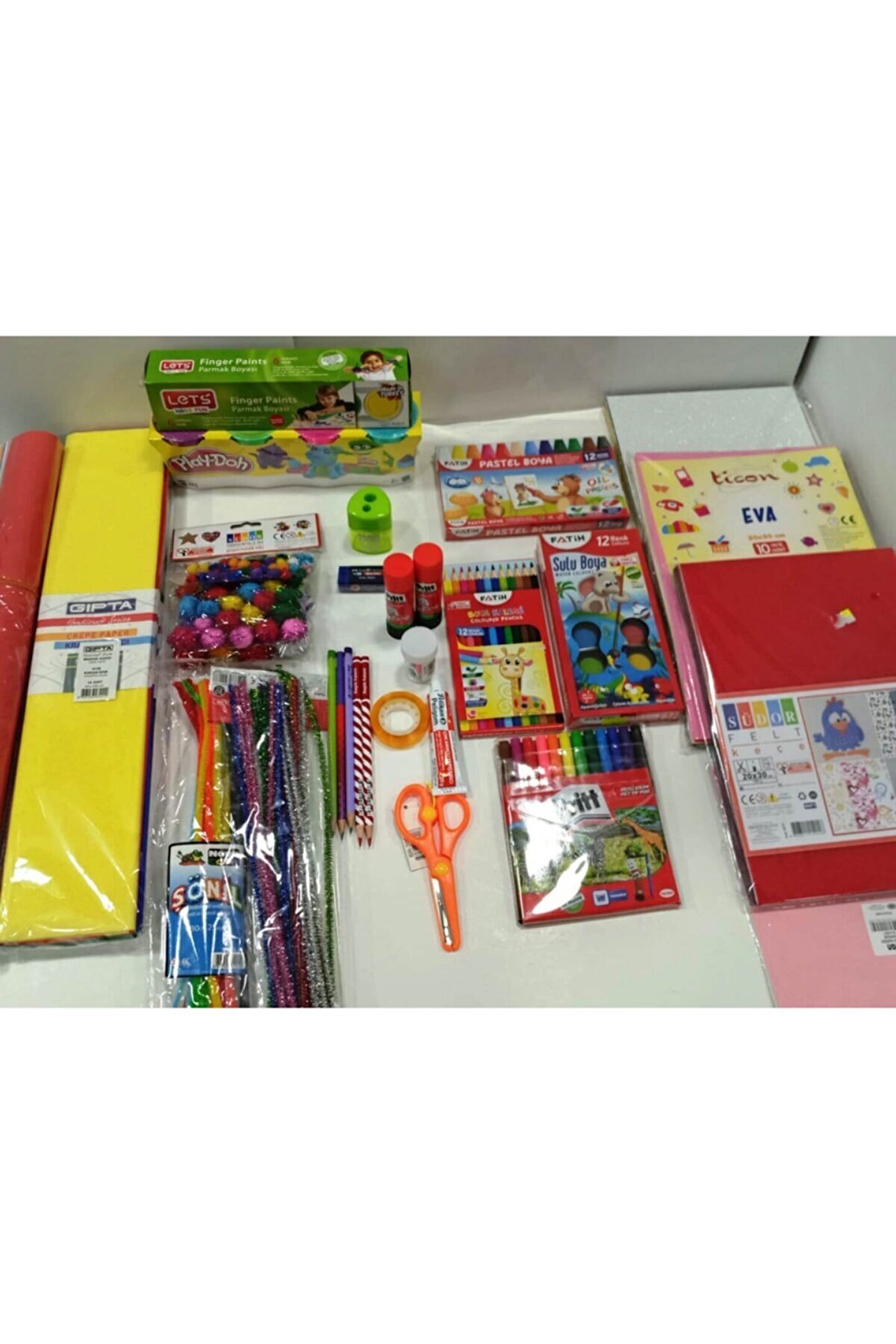 1; SINIF KIRTASİYE OKUL SETİ 12Lİ FATİH KURUBOYA 12Lİ FATİH SULIUBOYA 12Lİ FATİH PASTEL BOYA 12Lİ PRİTT KEÇELİBOYA KALEMİ EVA KEÇE SİMLİ EVA 10 RENK FON KARTONU 50*70 CM 10 RENK GRAFON KAĞIDI PONPON SİMLİ VE NORMAL ŞÖNİL BANT PELİGOM YAPIŞTIRICI MAKAS SİLGİ KALEMTRAŞ STİCK YAPIŞTIRICI OYNAR GÖZ OYUN HAMURU LETS PARMAK BOYASI 3 ADET FC; KURŞUN KALEM 2 ADET KIRMIZI KURŞUN KALEM;