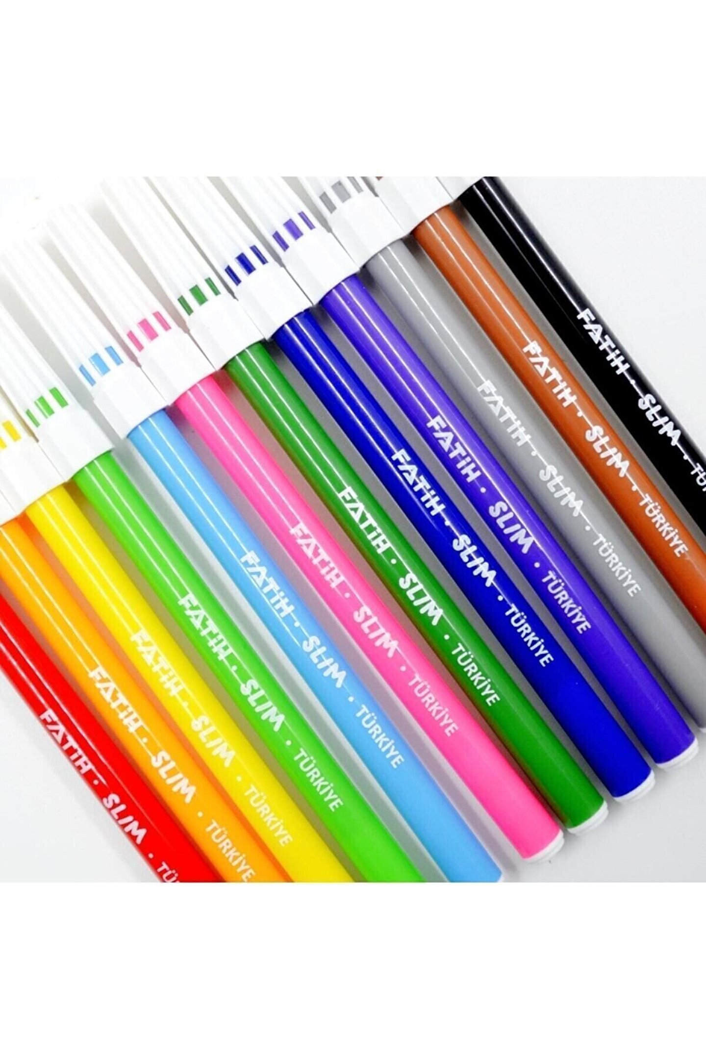 Fatih Slim Keçeli Kalem 12 Renk (34015) -Yüksek kaliteli, canlı renkli keçeli kalem -Su bazlı mürekkebi sayesinde 24 saat kapağı açık olarak kurumadan kullanılabilir. ; -Sağlığa zararlı hiçbir madde içermez. ; -Uzun metraj boyama özelliği. ; -Basınca dayanıklı uç özelliği.;