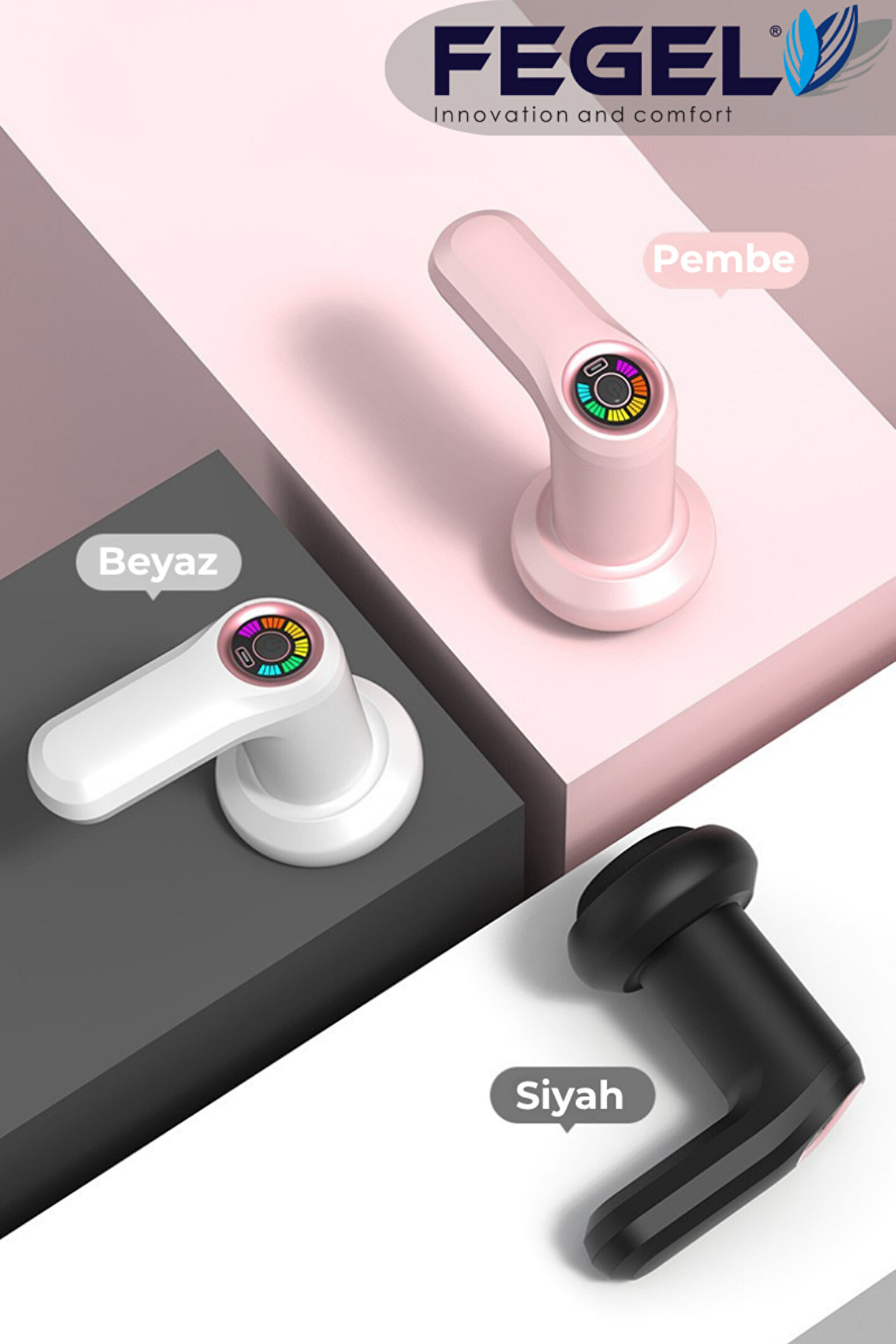 3 farklı renk mevcuttur. Siyah-Beyaz-Pembe