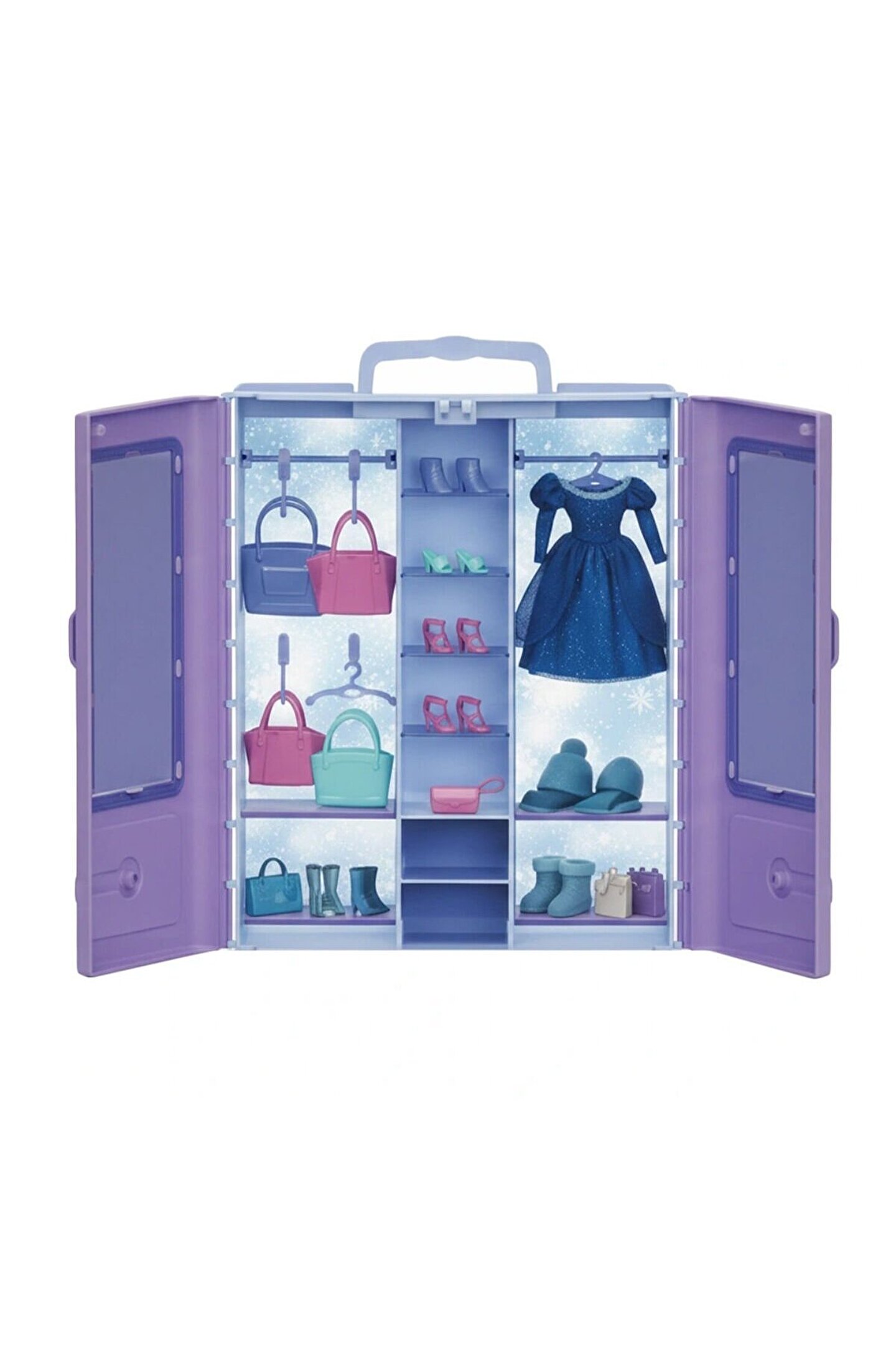 Bu set, genellikle bir mini dolap (gardrop) şeklinde gelir ve içerisinde kraliçe rolünü tamamlamak için gerekli olan taç, kolye, küpe, bilezik veya oyuncak ayakkabılar gibi pek çok aksesuarı barındırır. Gardrobun kendisi, aksesuarları düzenli bir şekilde saklamak için pratik bir çözüm sunar.