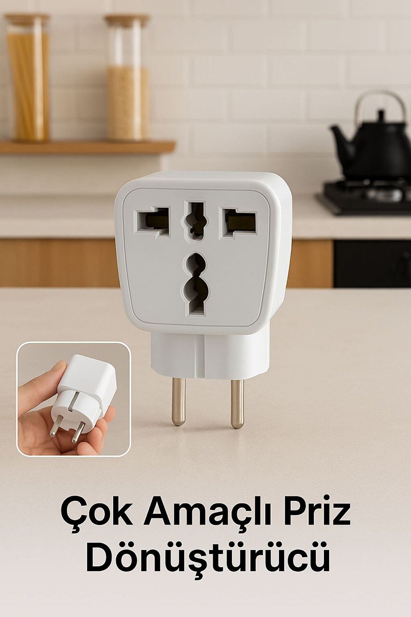 Geniş Uyumluluk:İngiliz (Type G) ve Amerikan (Type A/B) fiş tiplerini Türk (Type C/F) prizlerine dönüştürür.
