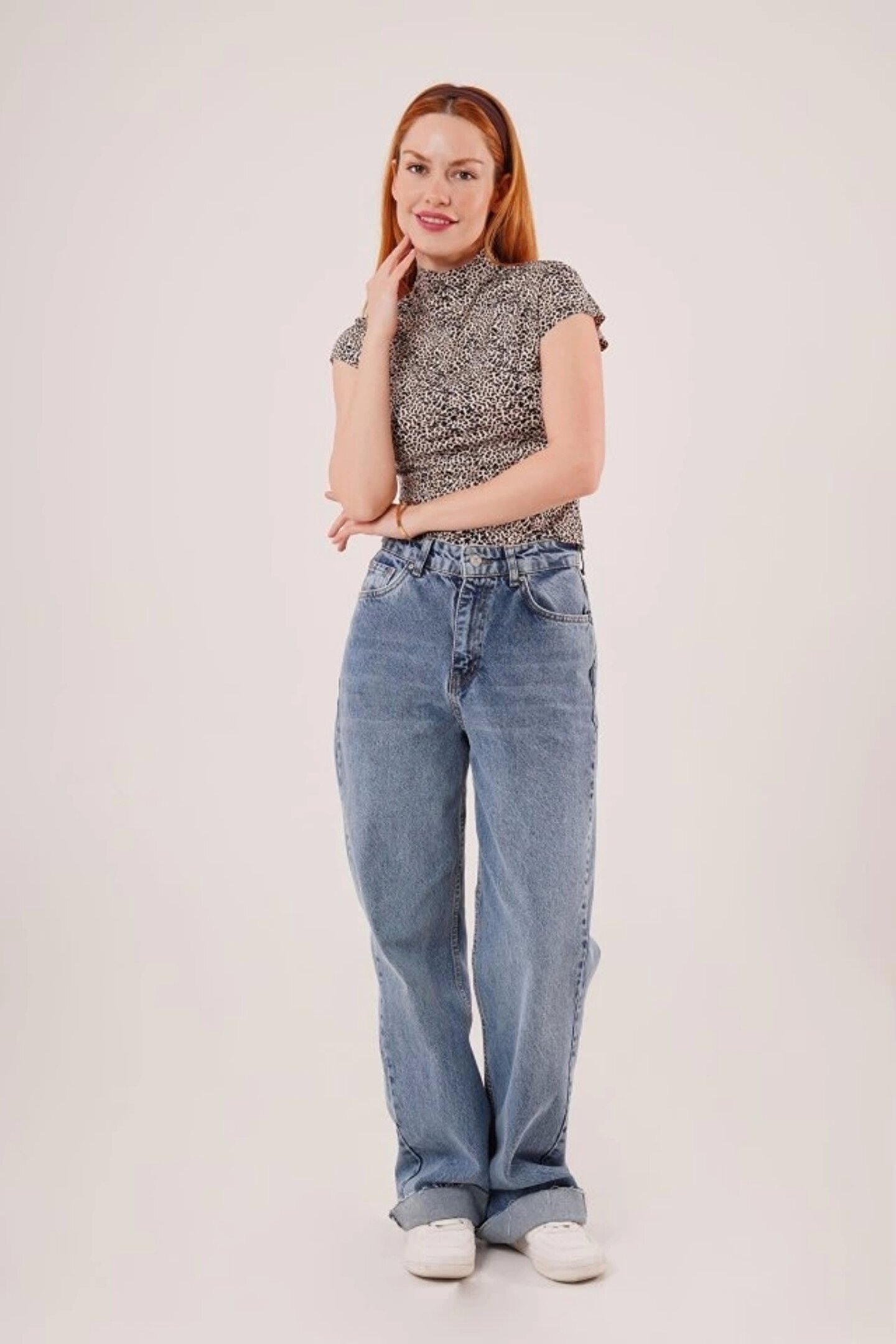 fh fashionhere Leopar Desen Kısa Kollu Basic T-Shirt
