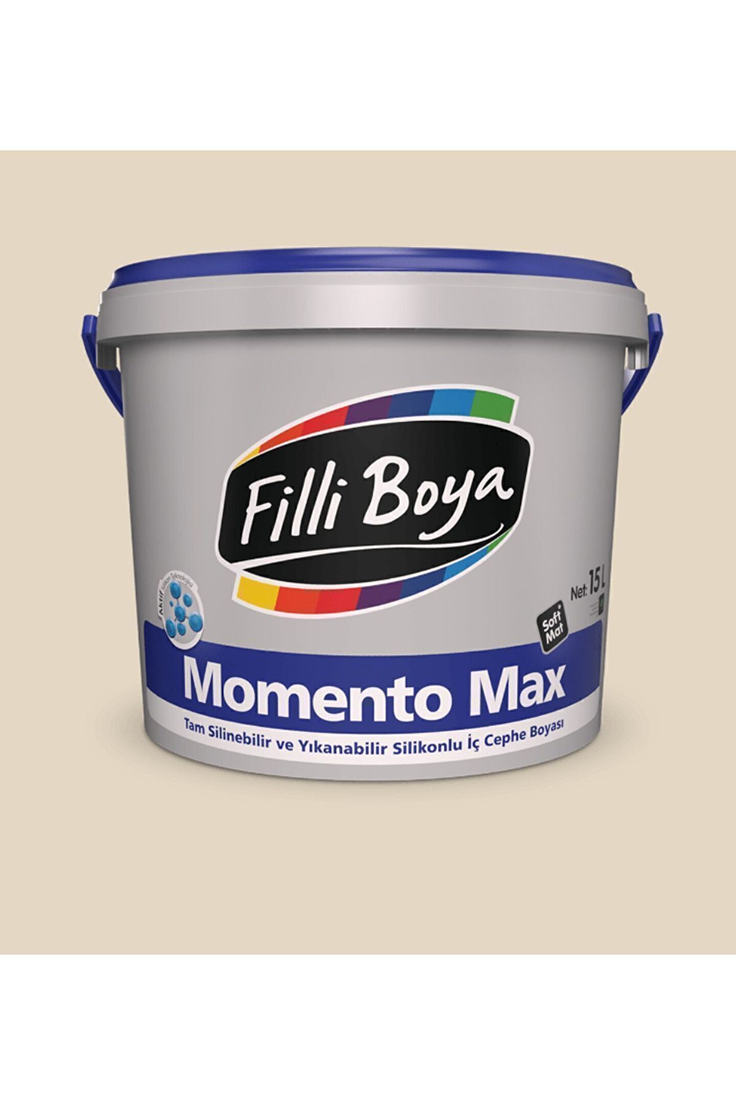 Filli Boya'nın yenilikçi Aktif Silikon Teknolojisi ile geliştirilmiş tam silinebilir ve yıkanabilir özellikte, soft mat ve soft dokudaki renkleri ile, dekoratif su bazlı VOC uyumlu silikonlu son kat iç cephe boyasıdır.; Kendine özgü soft mat® dokusu ile uygulandığı ortamlara eşsiz dekoratif özellik kazandırır.; Silinme ve sürtünmelere karşı dayanımı arttırılmıştır, sık kullanılan alanlarda dahi önerilir.; Aktif Silikon Teknolojisi ile Momento Max yüzeyde oluşabilecek kirlere karşı üstün dayanım gücü kazandırılmıştır.; Defalarca yıkandıktan sonra dahi ilk günkü renk tonunu, dokusunu ve özelliklerini korur.; Kolay uygulanır ve yüzeye yayılır, işçilik tasarrufu sağlar.; Yüksek örtücülüktedir.; Uygulandığı yüzey ile bütünleşir.; Çatlama, kabarma ve dökülme yapmaz.; Su bazlı olması nedeni ile rahatsız edici bir kokusu yoktur ve çevre dostudur.; Uygulama yapılacak yüzeyin cinsine, emiciliğine, yapısına ve uygulama alışkanlıklarına göre 1 Litre ile tek katta 13-22 m2 alan boyanabilir.; Boyalar renk seçimine göre özel olarak hazırlandığı için iade alınamamaktadır.; Boyalarınız özenle hazırlanıp paketlenerek size ulaştırılacaktır.