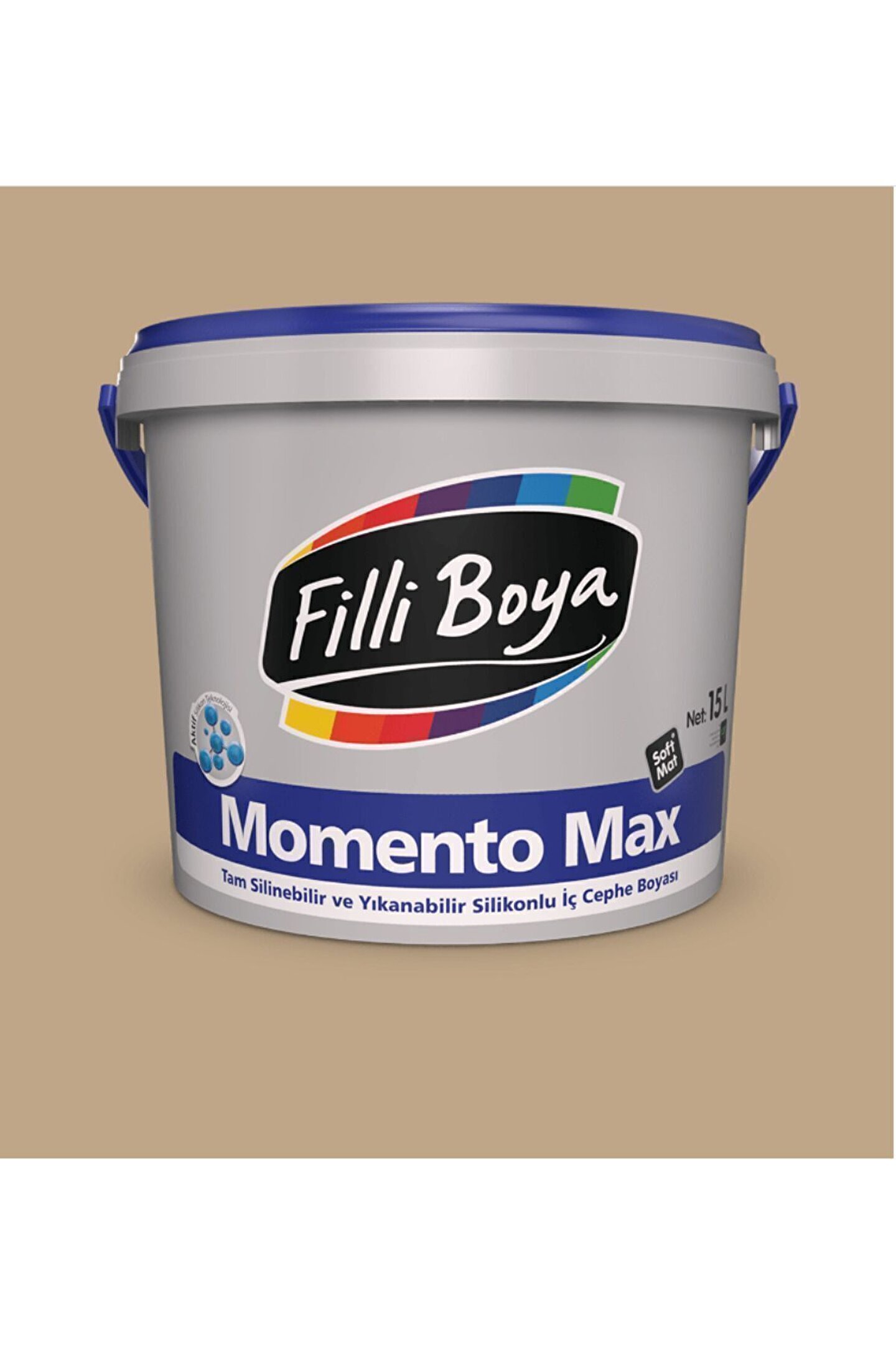 Filli Boya'nın yenilikçi Aktif Silikon Teknolojisi ile geliştirilmiş tam silinebilir ve yıkanabilir özellikte, soft mat ve soft dokudaki renkleri ile, dekoratif su bazlı VOC uyumlu silikonlu son kat iç cephe boyasıdır.; Kendine özgü soft mat® dokusu ile uygulandığı ortamlara eşsiz dekoratif özellik kazandırır.; Silinme ve sürtünmelere karşı dayanımı arttırılmıştır, sık kullanılan alanlarda dahi önerilir.; Aktif Silikon Teknolojisi ile Momento Max yüzeyde oluşabilecek kirlere karşı üstün dayanım gücü kazandırılmıştır.; Defalarca yıkandıktan sonra dahi ilk günkü renk tonunu, dokusunu ve özelliklerini korur.; Kolay uygulanır ve yüzeye yayılır, işçilik tasarrufu sağlar.; Yüksek örtücülüktedir.; Uygulandığı yüzey ile bütünleşir.; Çatlama, kabarma ve dökülme yapmaz.; Su bazlı olması nedeni ile rahatsız edici bir kokusu yoktur ve çevre dostudur.; Uygulama yapılacak yüzeyin cinsine, emiciliğine, yapısına ve uygulama alışkanlıklarına göre 1 Litre ile tek katta 13-22 m2 alan boyanabilir.; Boyalar renk seçimine göre özel olarak hazırlandığı için iade alınamamaktadır.; Boyalarınız özenle hazırlanıp paketlenerek size ulaştırılacaktır.