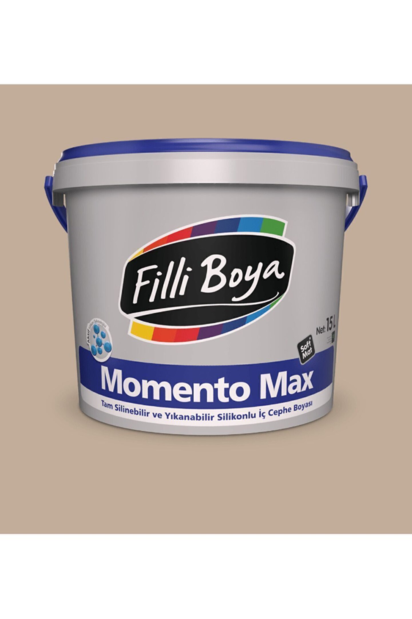 Filli Boya'nın yenilikçi Aktif Silikon Teknolojisi ile geliştirilmiş tam silinebilir ve yıkanabilir özellikte, soft mat ve soft dokudaki renkleri ile, dekoratif su bazlı VOC uyumlu silikonlu son kat iç cephe boyasıdır.; Kendine özgü soft mat® dokusu ile uygulandığı ortamlara eşsiz dekoratif özellik kazandırır.; Silinme ve sürtünmelere karşı dayanımı arttırılmıştır, sık kullanılan alanlarda dahi önerilir.; Aktif Silikon Teknolojisi ile Momento Max yüzeyde oluşabilecek kirlere karşı üstün dayanım gücü kazandırılmıştır.; Defalarca yıkandıktan sonra dahi ilk günkü renk tonunu, dokusunu ve özelliklerini korur.; Kolay uygulanır ve yüzeye yayılır, işçilik tasarrufu sağlar.; Yüksek örtücülüktedir.; Uygulandığı yüzey ile bütünleşir.; Çatlama, kabarma ve dökülme yapmaz.; Su bazlı olması nedeni ile rahatsız edici bir kokusu yoktur ve çevre dostudur.; Uygulama yapılacak yüzeyin cinsine, emiciliğine, yapısına ve uygulama alışkanlıklarına göre 1 Litre ile tek katta 13-22 m2 alan boyanabilir.; Boyalar renk seçimine göre özel olarak hazırlandığı için iade alınamamaktadır.; Boyalarınız özenle hazırlanıp paketlenerek size ulaştırılacaktır.