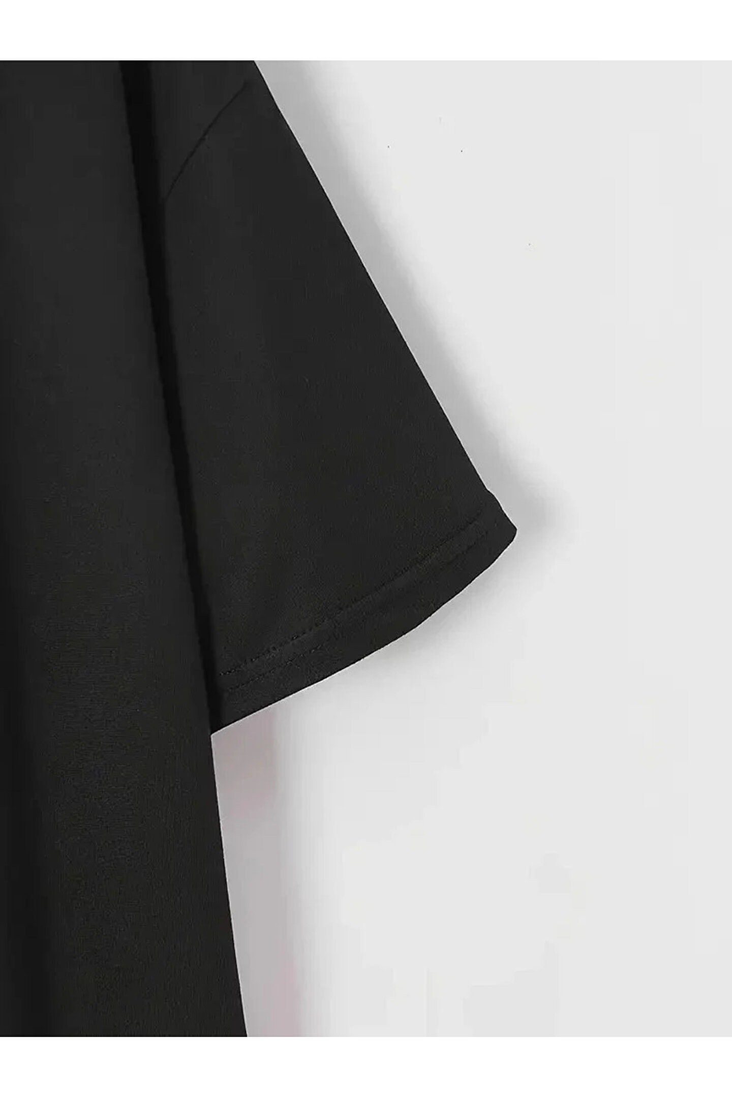 Flexium 201 PENYE COMPACK BASKILI OVERSİZE BİSİKLET YAKA M KISA KOL YAZLIK T-SHİRT - SİYAH