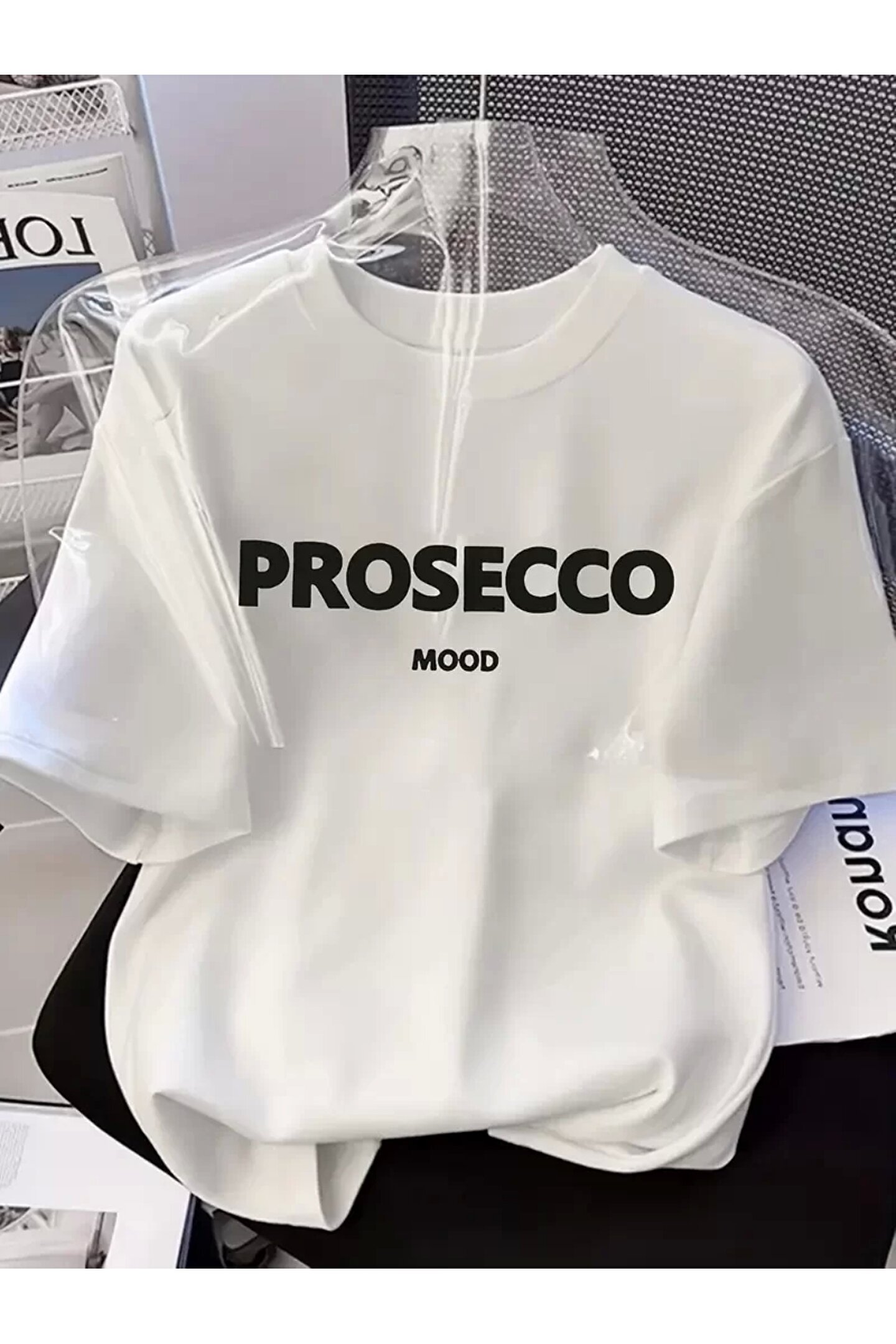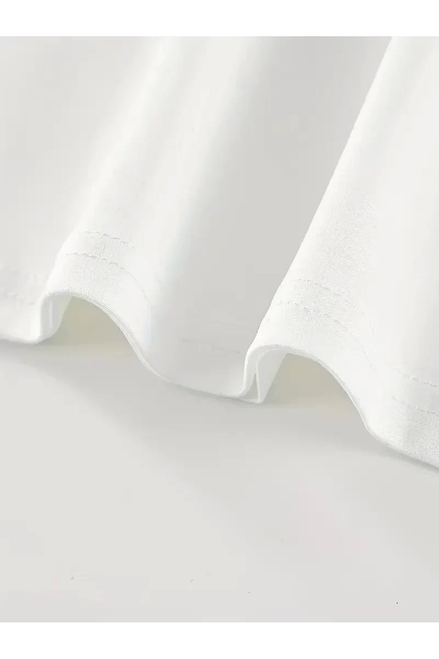 Flexium 201 Penye Compack Baskılı Oversize Kısa Kol Bisiklet Yaka T-shirt - Beyaz