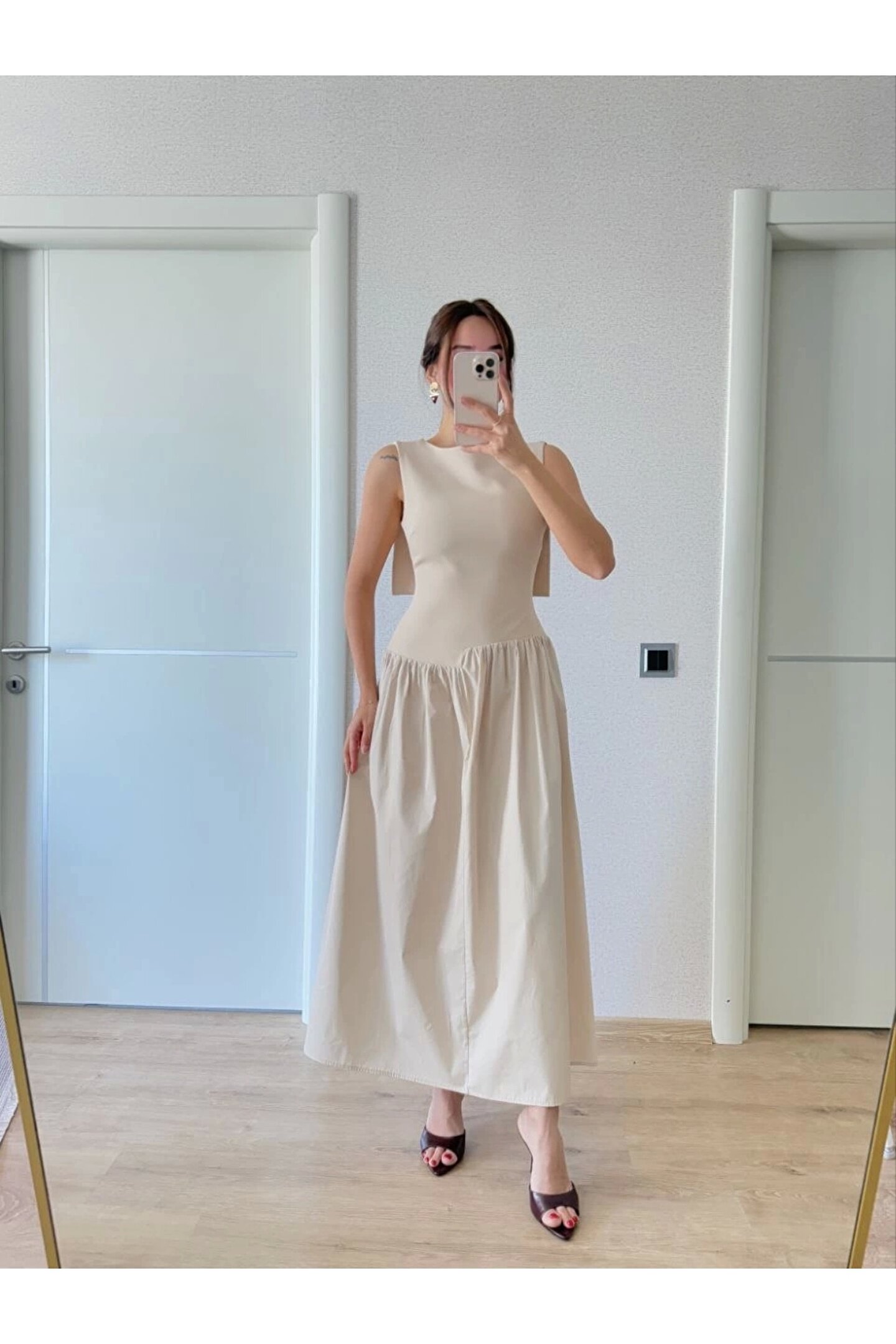 - Bej rengiyle şıklığı ve zarafeti bir arada sunan bu elbise, günlük kullanıma uygun casual tasarımıyla dikkat çeker.; - %95 polyester ve %5 likra karışımı kumaşı sayesinde esneklik ve konforu bir arada sunar.; - Kolsuz tasarımı ile yaz aylarında serinlik ve rahatlık sağlar.; - Düz deseniyle sade ve zamansız bir görünüm elde edilir.; - Regular kalıbı sayesinde vücut hatlarınıza uyum sağlar ve rahat bir kullanım sunar.; - Krep kumaşı, hafif yapısıyla gün boyu rahatlık hissi verirken, aynı zamanda şık bir görünüm kazandırır.; - Kemersiz tasarımı ile vücut hatlarınızı doğal bir şekilde vurgular ve sade bir stil oluşturur.; - Bisiklet yaka detayı ile modern ve minimalist bir stil sunar.; - Cepsiz yapısıyla minimalist çizgileri korurken, sırt dekoltesi ile feminen dokunuşlar ekler.; - Uzun boyu ile hem günlük hem de özel günlerde tercih edebileceğiniz çok yönlülükte bir parça haline gelir.; - Tüm sezonlar için uygun olan bu elbise, yılın her zamanında gardrobunuzun vazgeçilmezlerinden biri olacak.; - Yetişkinler için tasarlanmış olup, M beden seçeneğiyle geniş beden skalası sunar.; - Kolay bakım için Type 1 yıkama talimatına uygun şekilde temizlenebilir.