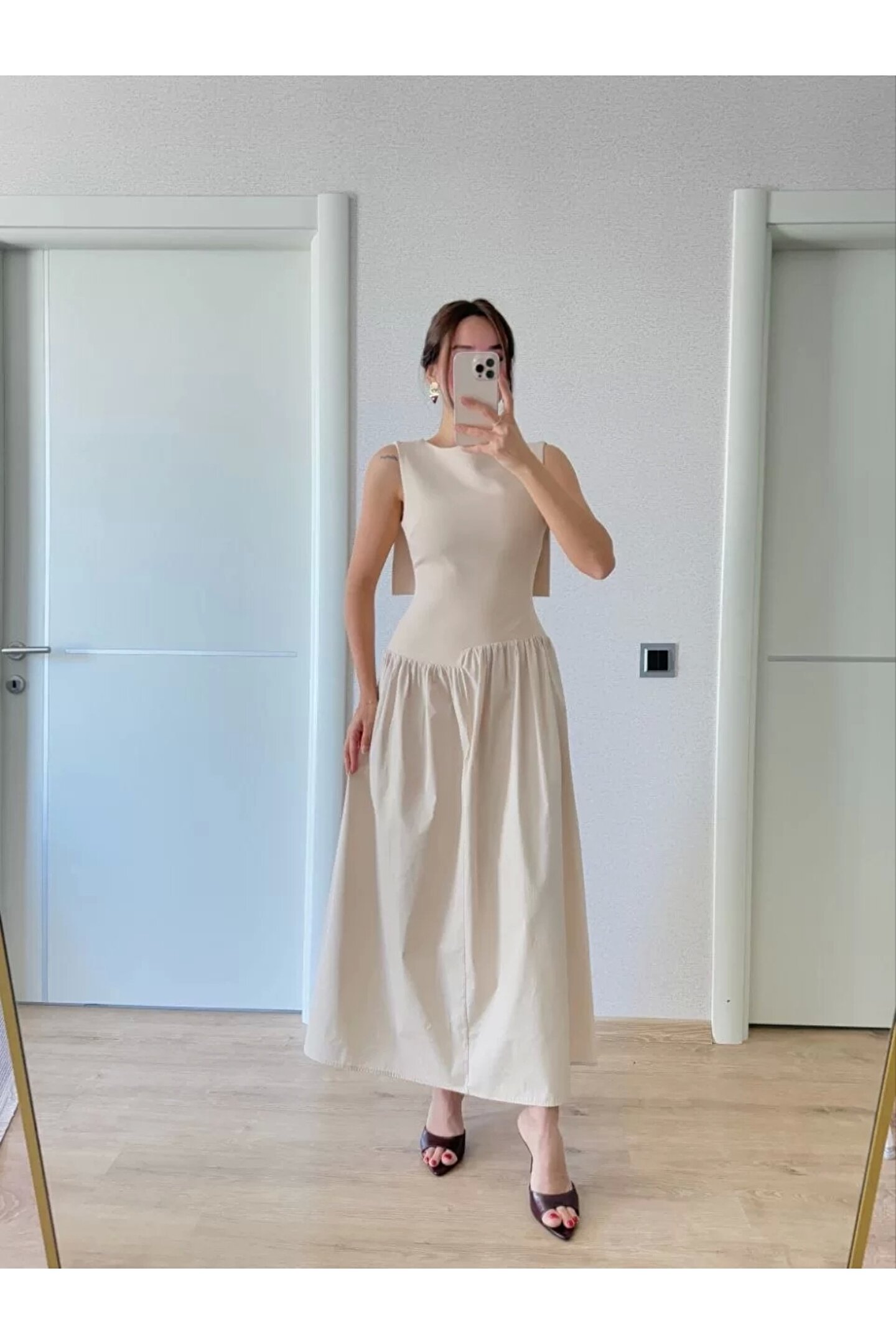 - Bej rengiyle şıklığı ve zarafeti bir arada sunan bu elbise, günlük kullanıma uygun casual tasarımıyla dikkat çeker.; - %95 polyester ve %5 likra karışımı kumaşı sayesinde esneklik ve konforu bir arada sunar.; - Kolsuz tasarımı ile yaz aylarında serinlik ve rahatlık sağlar.; - Düz deseniyle sade ve zamansız bir görünüm elde edilir.; - Regular kalıbı sayesinde vücut hatlarınıza uyum sağlar ve rahat bir kullanım sunar.; - Krep kumaşı, hafif yapısıyla gün boyu rahatlık hissi verirken, aynı zamanda şık bir görünüm kazandırır.; - Kemersiz tasarımı ile vücut hatlarınızı doğal bir şekilde vurgular ve sade bir stil oluşturur.; - Bisiklet yaka detayı ile modern ve minimalist bir stil sunar.; - Cepsiz yapısıyla minimalist çizgileri korurken, sırt dekoltesi ile feminen dokunuşlar ekler.; - Uzun boyu ile hem günlük hem de özel günlerde tercih edebileceğiniz çok yönlülükte bir parça haline gelir.; - Tüm sezonlar için uygun olan bu elbise, yılın her zamanında gardrobunuzun vazgeçilmezlerinden biri olacak.; - Yetişkinler için tasarlanmış olup, M beden seçeneğiyle geniş beden skalası sunar.; - Kolay bakım için Type 1 yıkama talimatına uygun şekilde temizlenebilir.