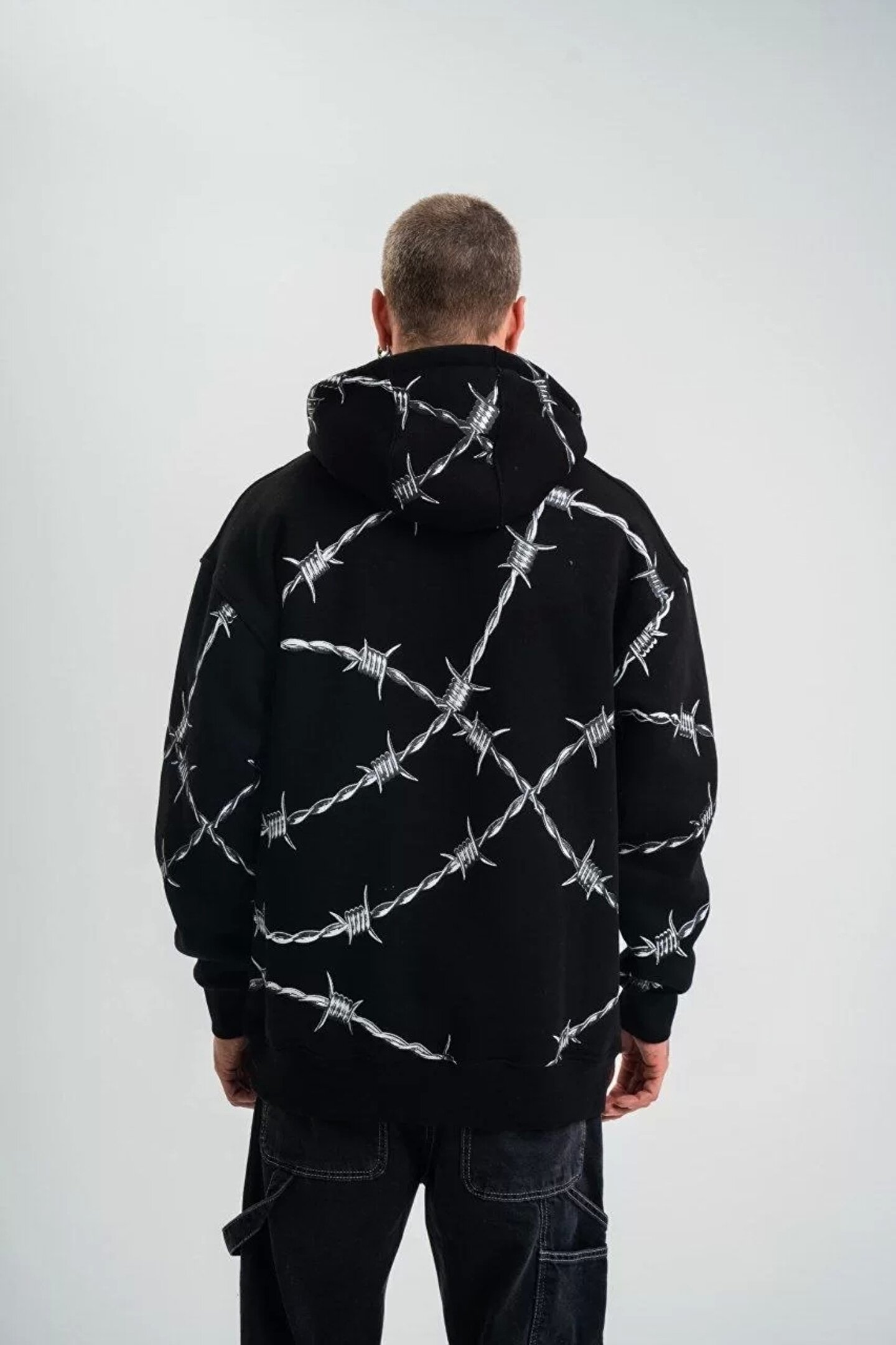 Flexium Unisex Kapşonlu Varak ve Pano Baskılı SweatShirt- Siyah