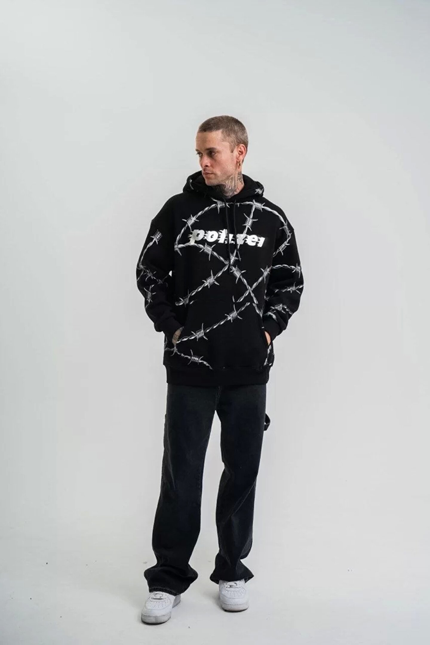 POLIZEI Premium Kalite Kapşonlu Varak Ve Pano Baskılı SweatShirt - Siyah