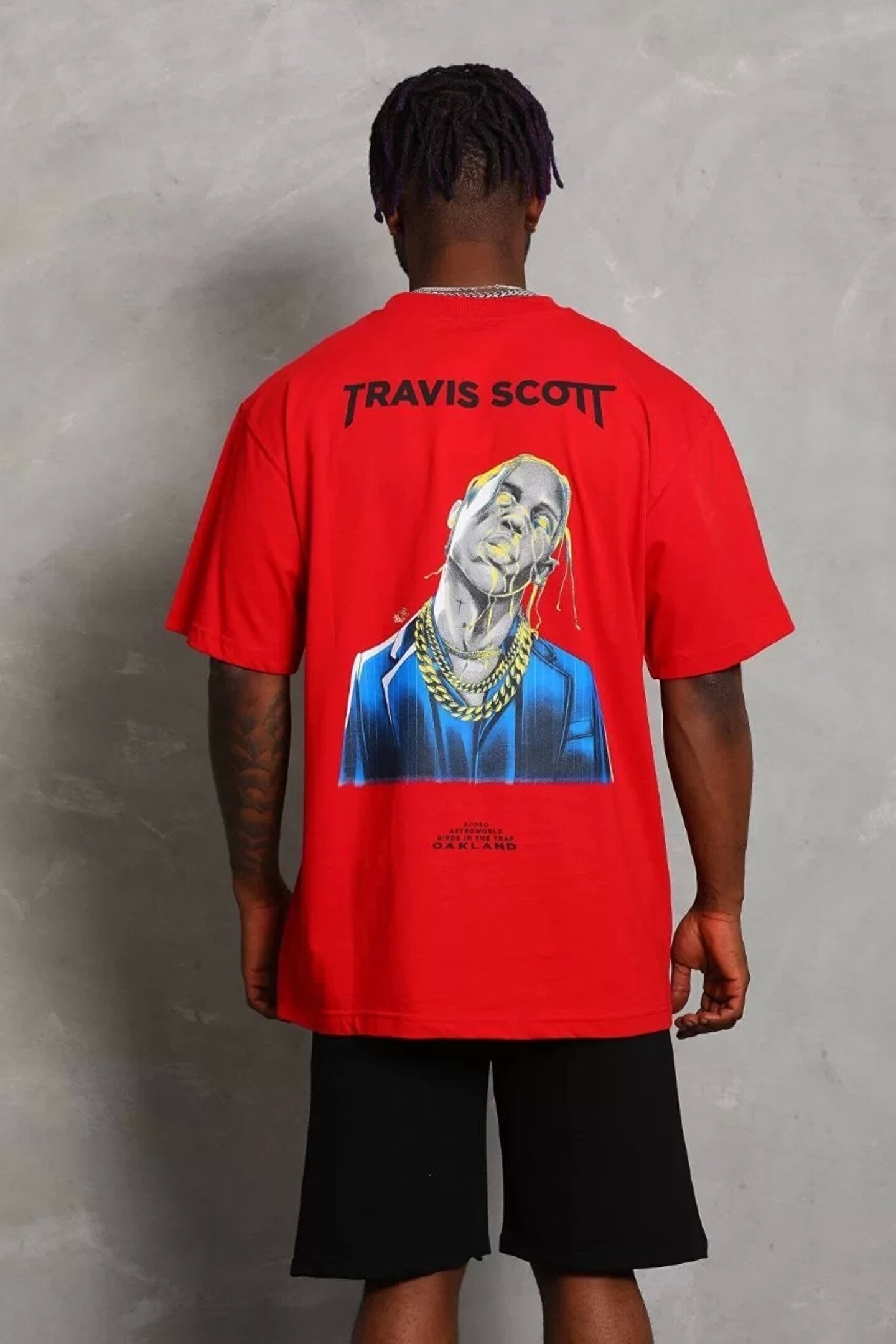 Unisex Oversize Baskılı Bisiklet Yaka T-Shirt - Kırmızı