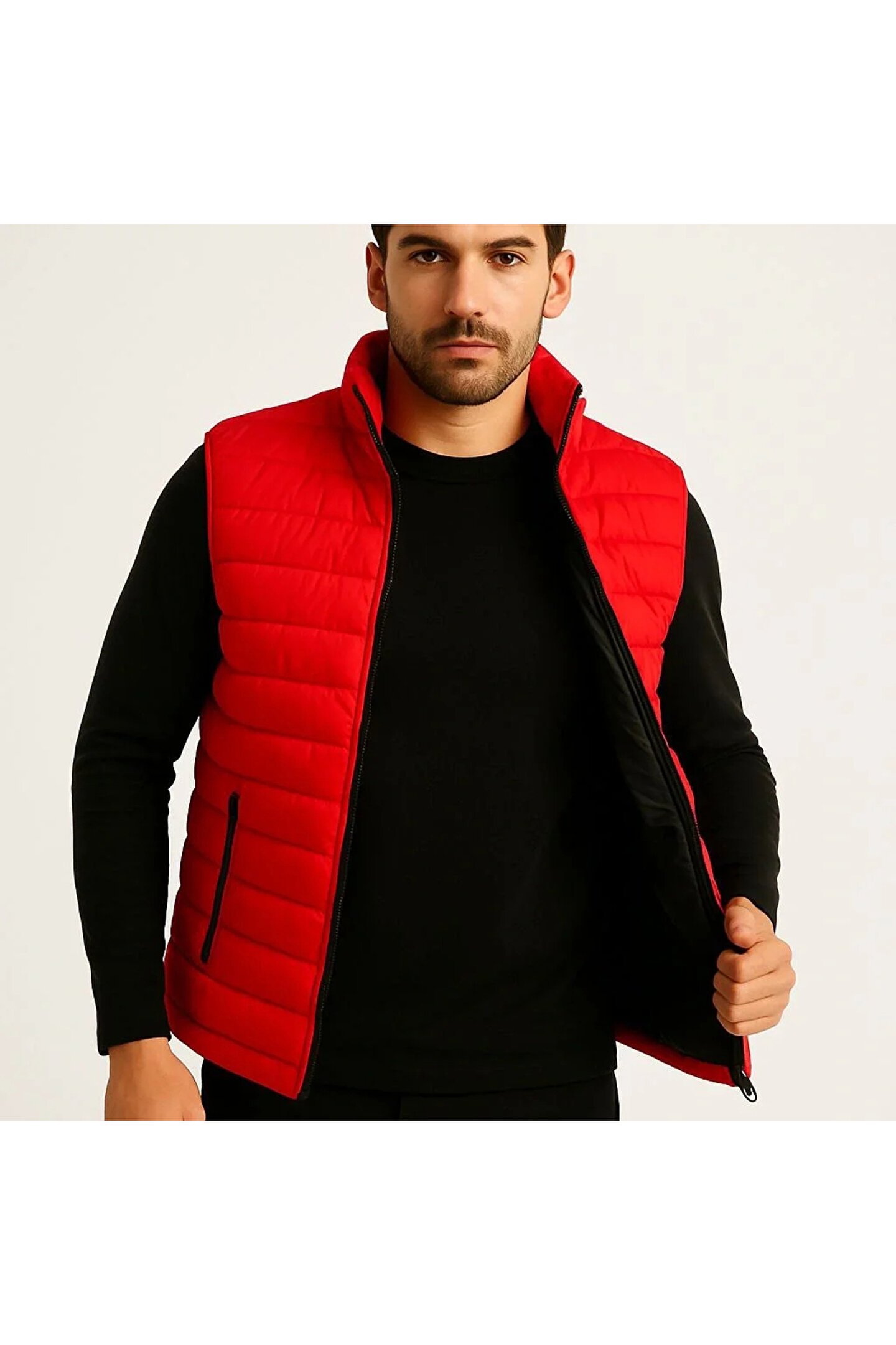 fourblack Erkek Şişme Fermuarlı Yelek Su itici Kapitone Astarlı Kumaş Cepli Hafif Kışlık Spor Rahat Kalıp - Kı