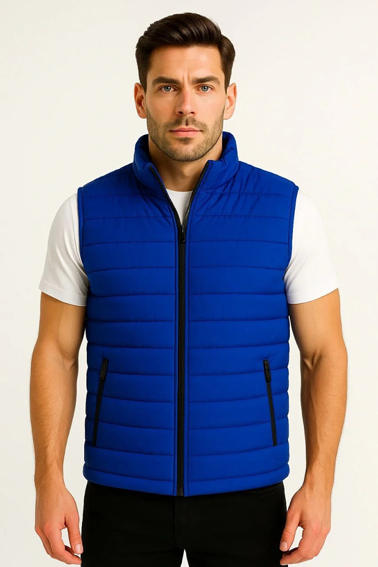 fourblack Erkek Şişme Fermuarlı Yelek Su itici Kapitone Astarlı Kumaş Cepli Hafif Kışlık Spor Rahat Kalıp - Sa
