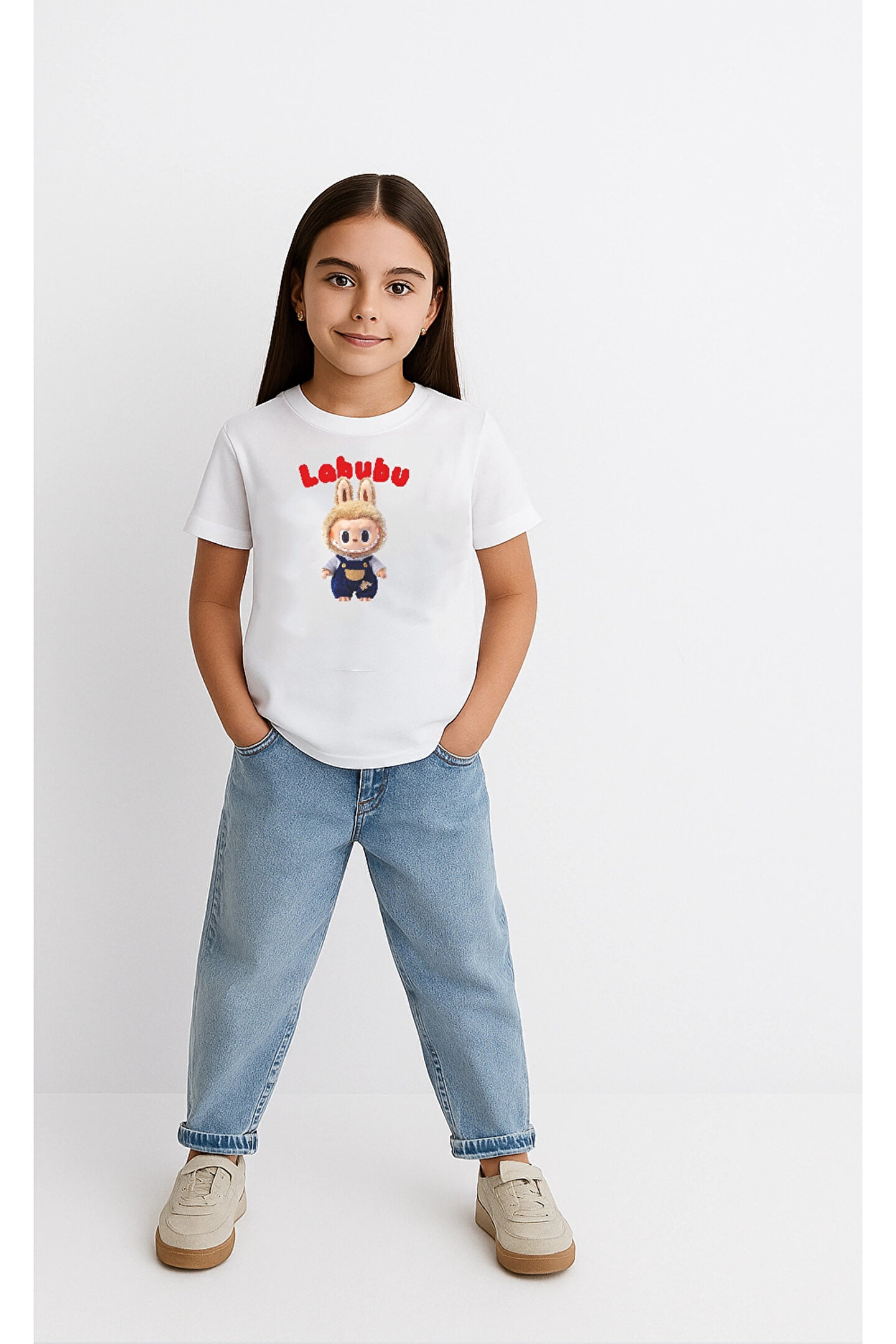 fourblack Kız Labubu Çocuk Baskılı T-Shirt - Beyaz
