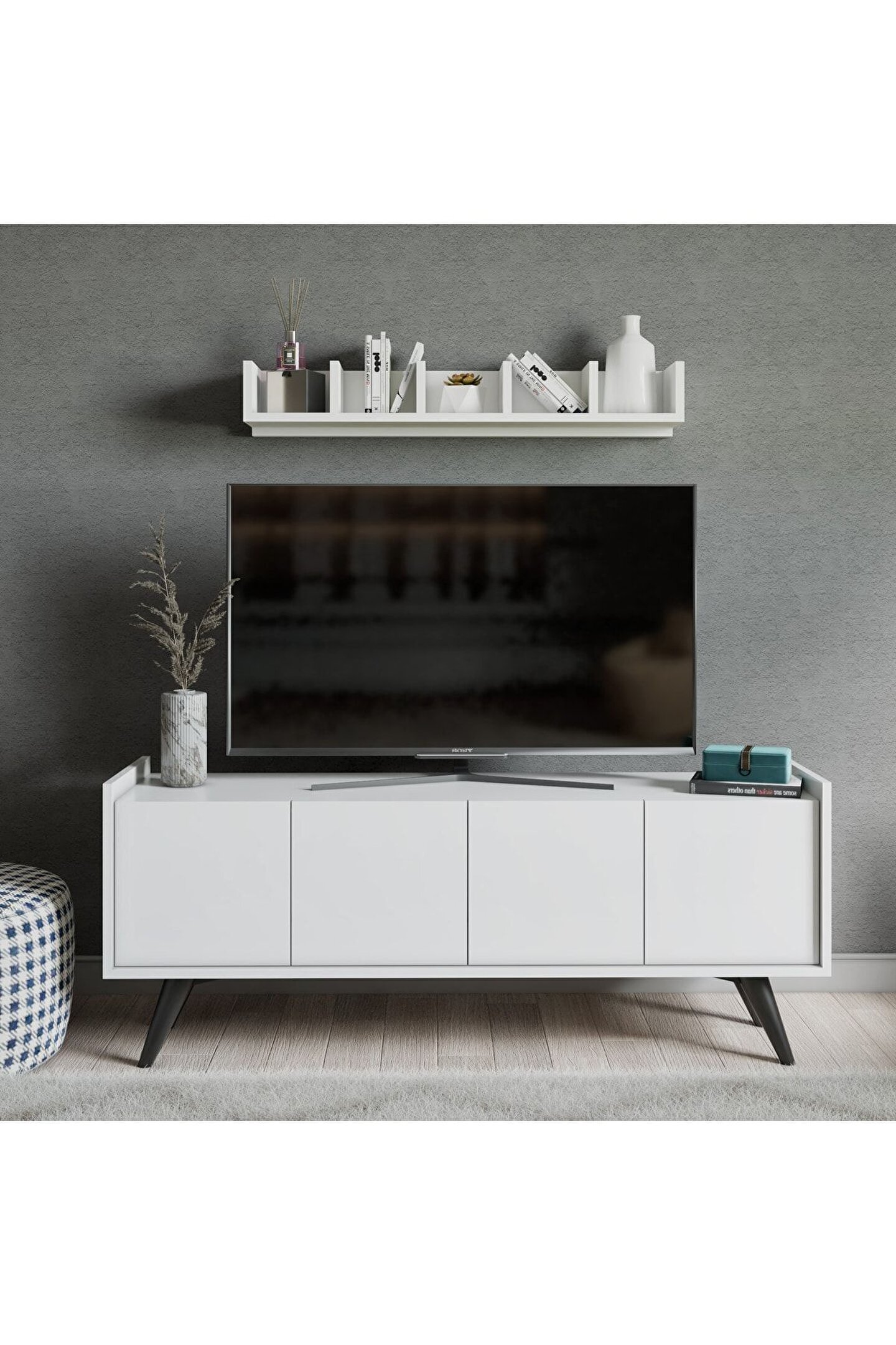 Suntalam malzemesi sayesinde dayanıklı ve uzun ömürlü bir yapıya sahiptir; - Dolaplı tasarımı ile ekstra depolama alanı sağlar, salonunuzda düzeni korumanıza yardımcı olur;