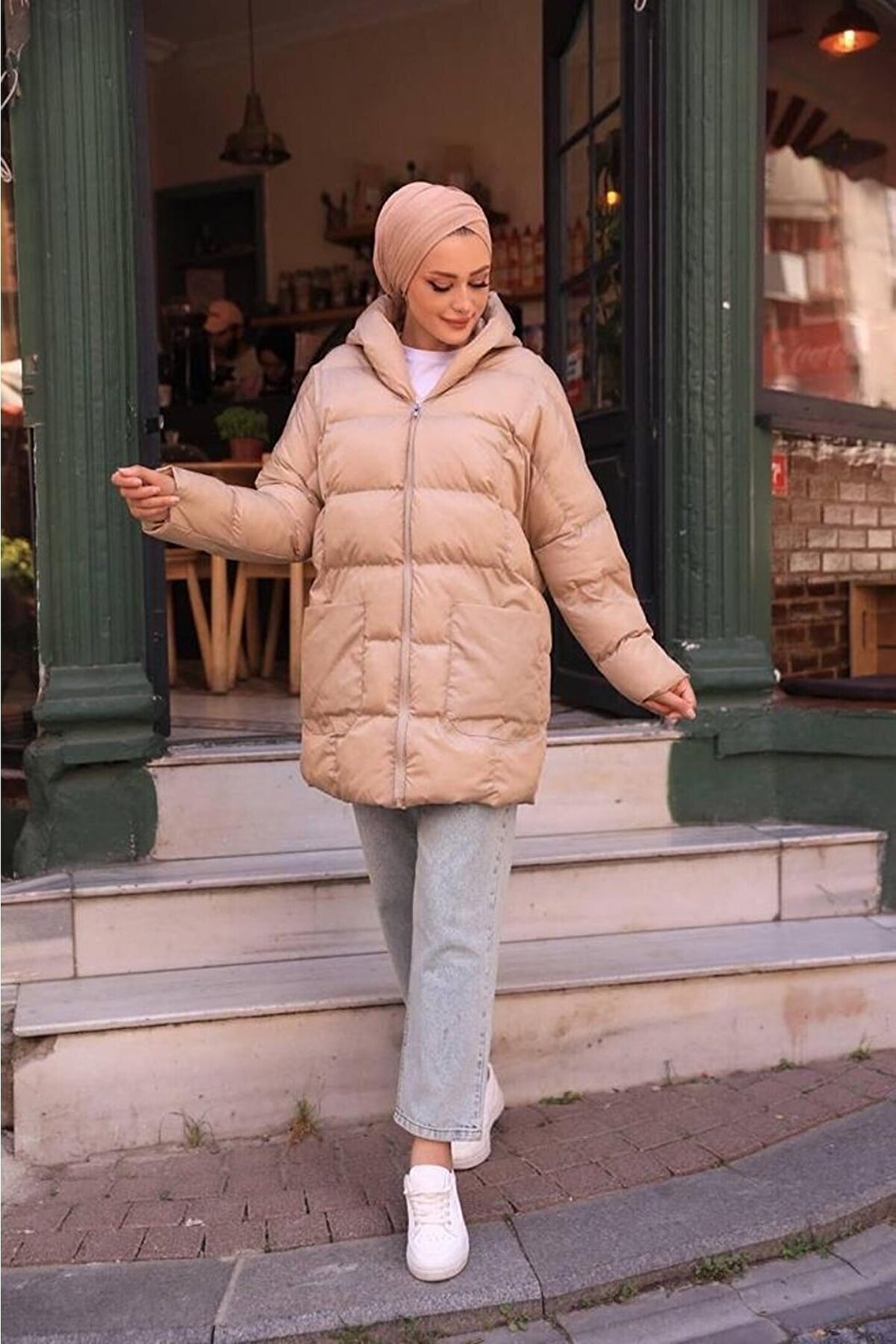 Bomber modeliyle modern ve şık bir görünüm sunan bu tesettür mont, günlük kullanım için idealdir.; Dokuma kumaşı sayesinde dayanıklı ve kaliteli bir yapıya sahiptir.; Düz deseniyle sade ve zamansız bir stil oluşturan mont, her türlü kombinle uyum sağlar.; Uzun kollu tasarımı ile mevsim geçişlerinde sizi soğuktan korurken şıklığınızdan ödün vermezsiniz.; Yan cepli yapısıyla pratiklik kazandırılan montta eşyalarınızı güvenle taşıyabilirsiniz.; Fermuarlı kapama şekli kolay kullanım sağlar ve montunuzu istediğiniz zaman giyip çıkarabilirsiniz.; Dolum dolgu tekniği ile hafifliği koruyarak sıcak tutar; kuş tüyü karışımlı dolgu materyali ise yumuşaklık ve konfor sunar.; Basic silueti sayesinde farklı vücut tiplerine uyum sağlayarak rahat bir kullanım imkanı verir.; Regular kalıp ile vücudu saran ama sıkmayan bir yapıda tasarlanmıştır.; Trend stil anlayışını yansıtan bu montla güncel moda akımlarına ayak uydurursunuz.; %100 polyester materyal bileşeni sayesinde uzun ömürlü kullanım vaat ederken aynı zamanda kolay bakım avantajını da beraberinde getirir.; Krem rengi ile zarif bir görünüm kazandırırken, standart boyu çoğu bedene uygunluk gösterir.; Kapüşonlu yaka tipi soğuk havalarda ekstra koruma sağlar; çift cepli yapısıyla fonksiyonellik artar.; Astarlı iç yapıyla konforunuz düşünülerek üretilmiştir; böylece montunuzu daha da sıcak tutar.; Type 2 yıkama talimatlarına uyularak temizlenmesi kolaydır; böylece uzun süreli kullanımın keyfini çıkarabilirsiniz.;