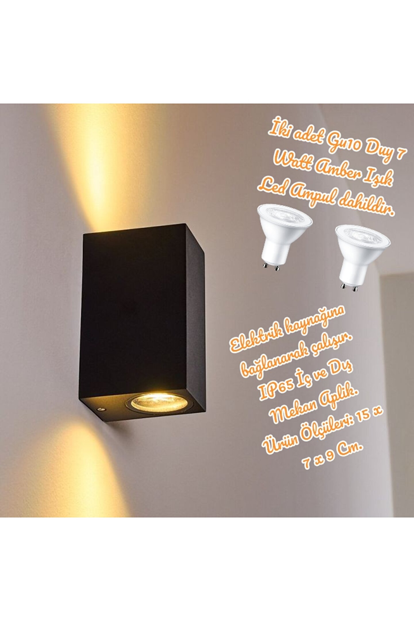 14 watt amber ışık ampuller dahil çift yönlü iç ve dış mekan armatür, bahçe duvar aydınlatma apliği siyah kasa amber ışık Ürün elektrik kaynağına bağlanarak çalışır. ; 2 adet gu10 duy 7 watt gün ışığı ampul pakete dahildir. ; (2 x 7 : 14w max.) Birinci kalite sert plastik kasa olan ürünümüz çok uzun seneler kullanıma uygundur. ; Garantili üründür. ; Aynı ürünün ampulleri dahil olan tüm kasa ve ışık renkleri mağazamızda mevcuttur. ; Yağmur, kar ve güneş gibi mevsimsel şartlardan etkilenmez. ; Rohs ve ce belgeli, ıp65 koruma sınıfındandır. ; Ürün ile ilgili merak ettiğiniz her şeyi sormak için bizimle iletişime geçebilirsiniz. ; Memnuniyetle yardımcı olacağız. ; Ürün ölçüleri: 15 cm yükseklik, 7 cm en, 9 cm derinlik. ; Çift yönlü antrasit kasa modern bahçe duvar apliği, ıp65 sınıfı plastik kasa iç ve dış mekan armatür 14 watt amber ışık ampuller dahil çift yönlü iç ve dış mekan armatür, bahçe duvar aydınlatma apliği;