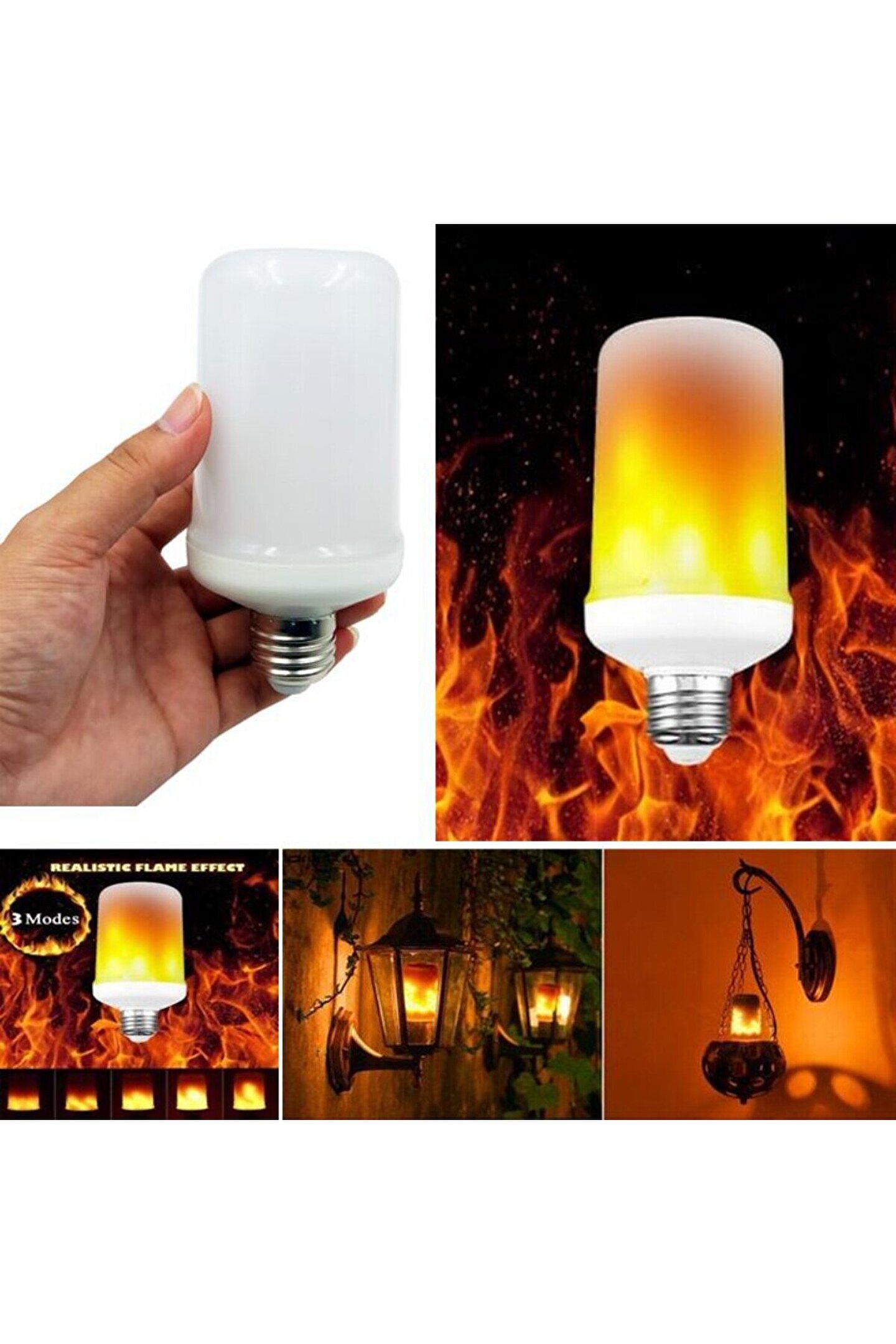 Ürünümüz benzer görünen fakat kalitesi düşük çöp ürünlerden değil, birinci sınıf, çok kaliteli, tak - unut bir üründür. Garantilidir. 5 Watt, 450 Lümen, üç farklı ışık modu ve alev efekti vardır. E27 Duylu olan ve ampul ölçüleri uygun iç ve dış mekan tüm aplik, armatür, avize, lambader, abajur, gece ve masa lambası gibi ürünlerde kullanıma uygundur. %85 Enerji tasarrufu sağlar. Civa ve ultraviyole ışın içermez. CE Belgeli ve AEEE yönetmeliğine uygundur.
