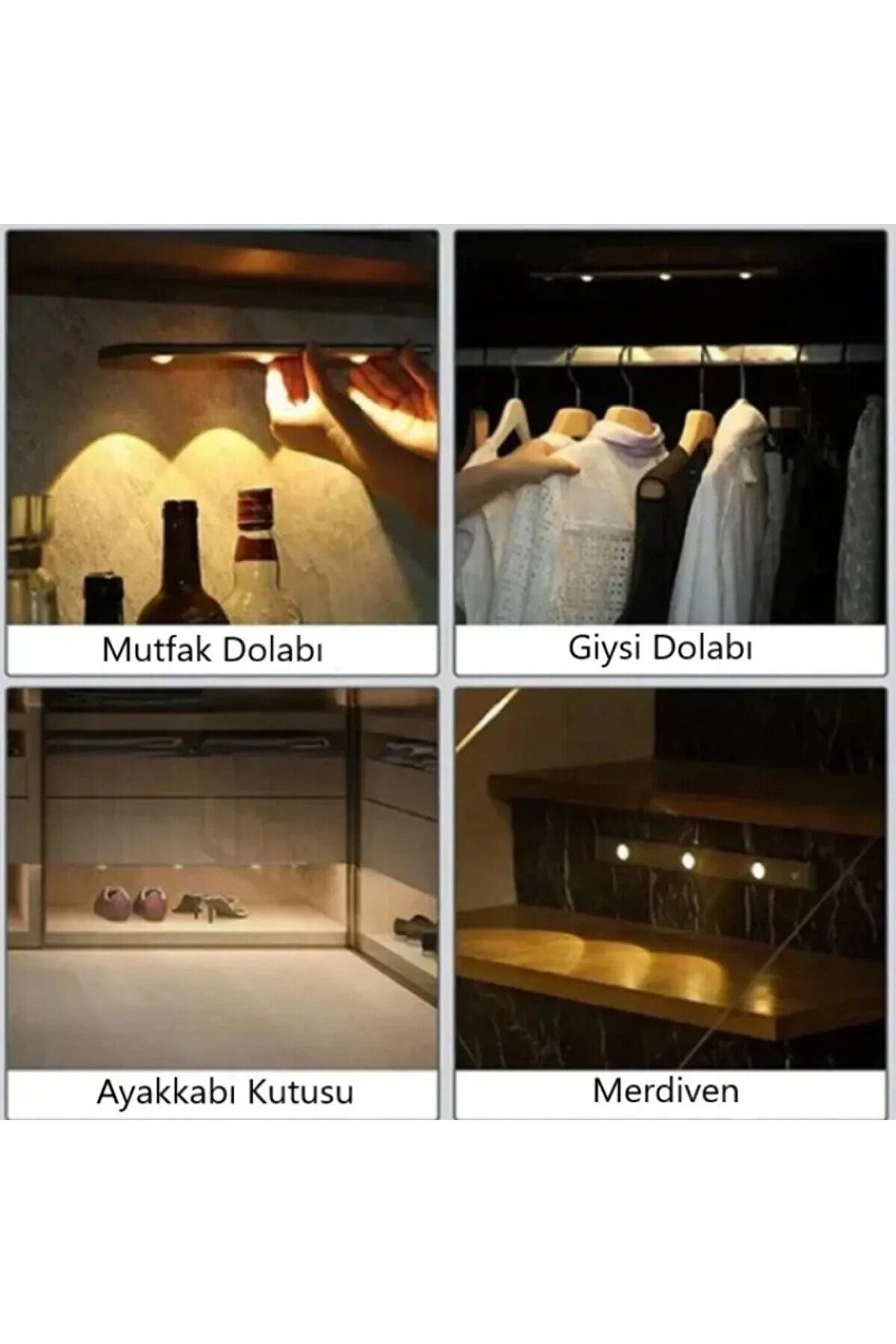 Geniş kullanım alanı: Alt dolap aydınlatması, LED dolap aydınlatması, hareket sensörü ışıkları, şarj edilebilir LED ışık, sensörlü gece lambası, elbise dolabı ışıkları, yapışkan ışıklar, USB ışığı, merdiven ışıkları, kiler ışıkları, tavan arası ışıkları vb.