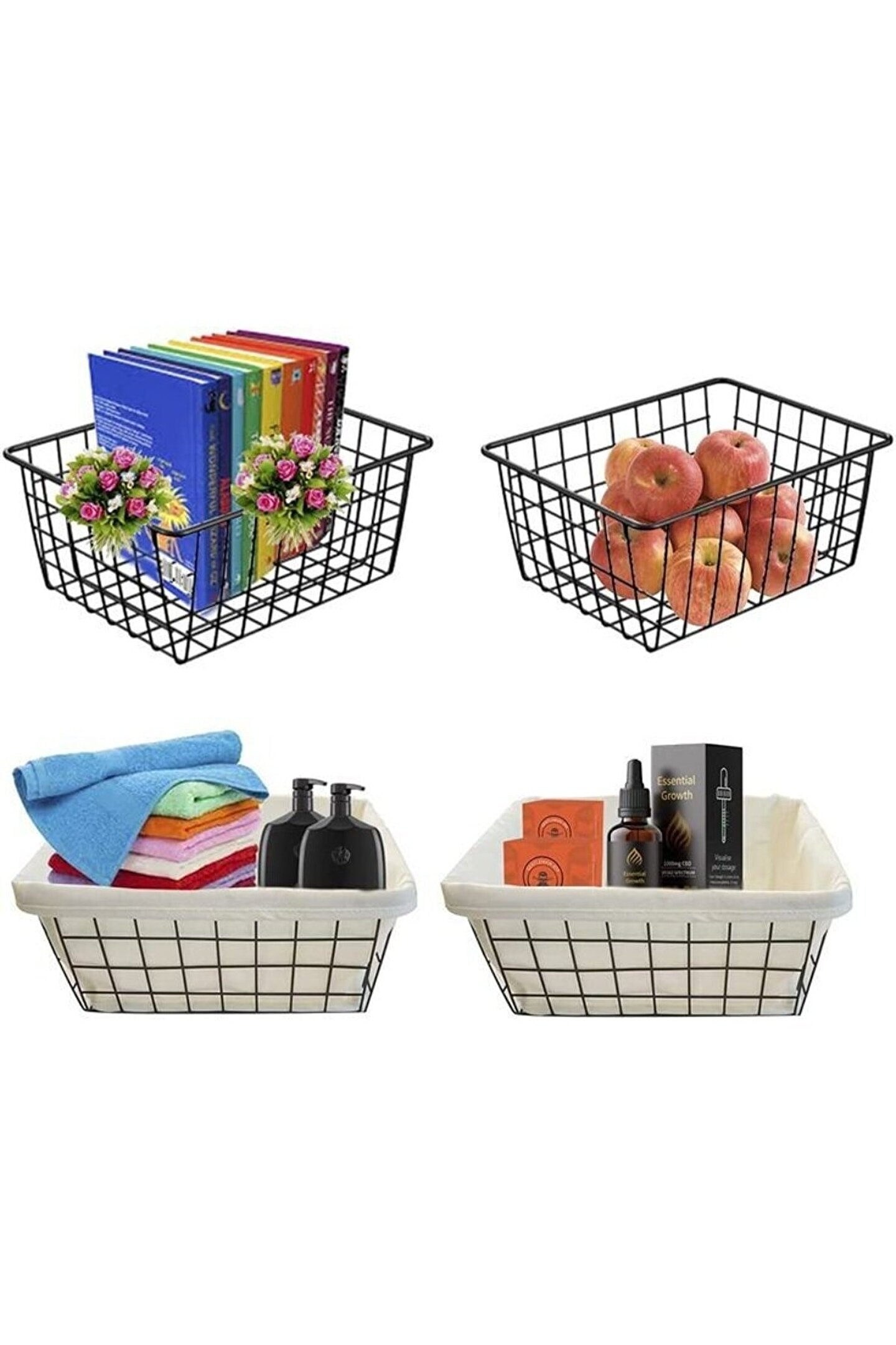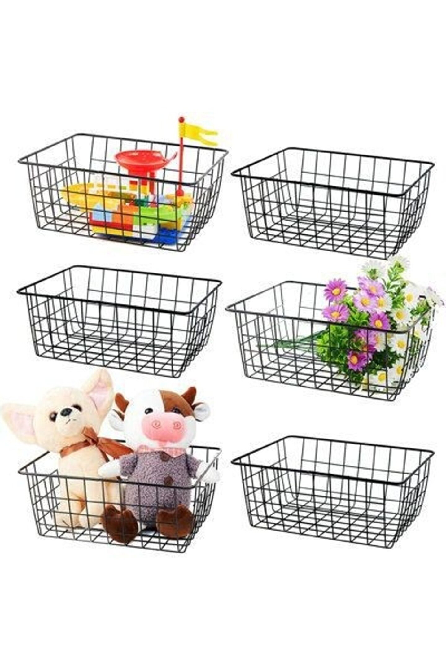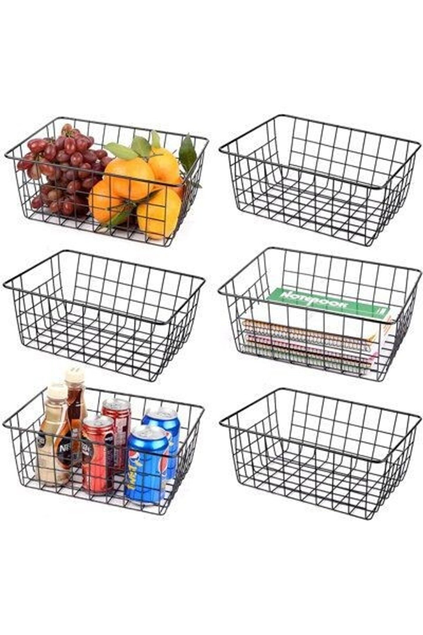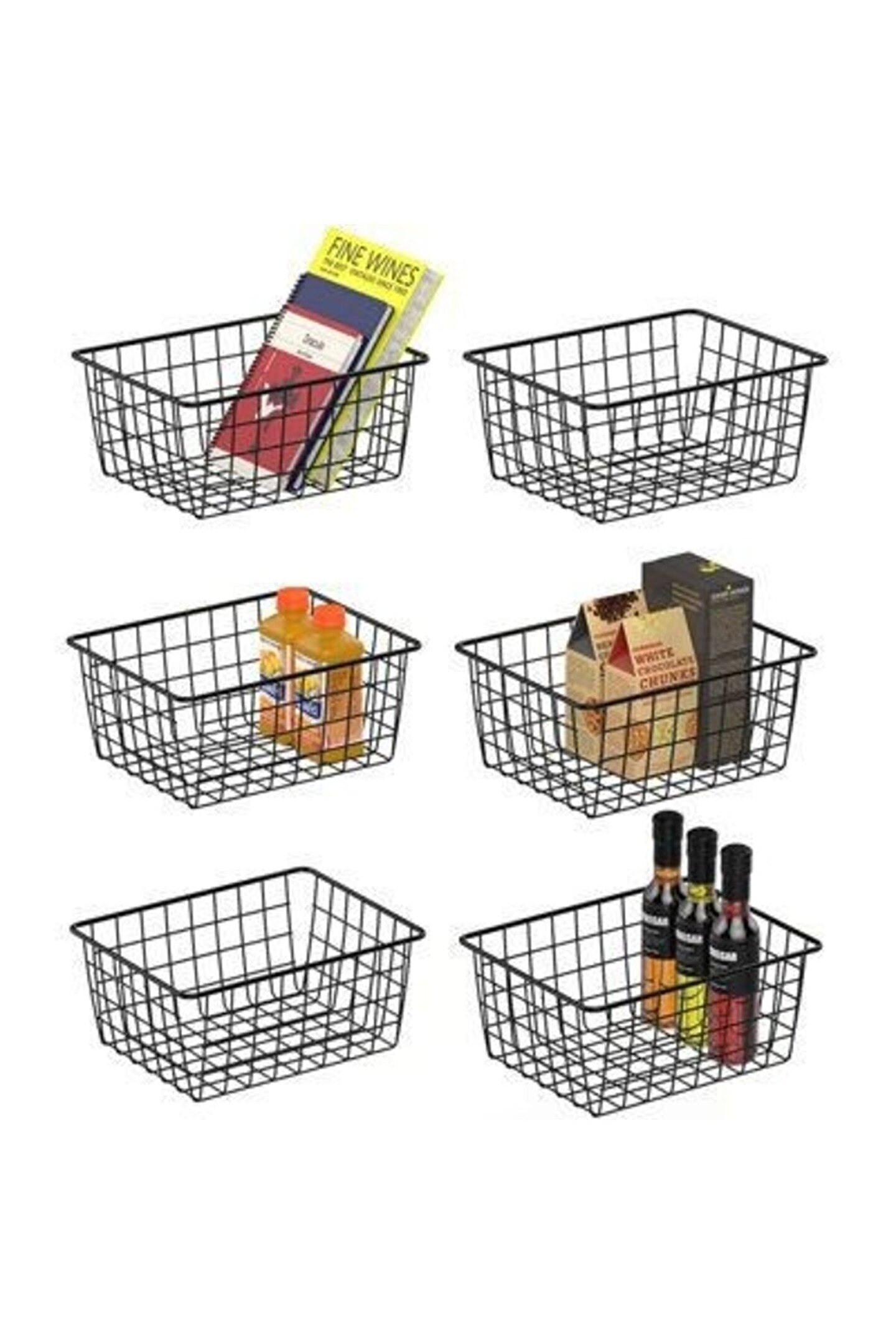 PAKET İÇERİĞİ: 6 ADET Tel Sepet Organizer; Metal Ferforja Sepet, Masa Üstü Organizer, Organizer Sepet, Düzenleyici Organizer, Dolap İçi Organizer, Tel Metal sepetimiz ile sık kullanılan eşyaları sepette düzenlip kolayca erişebilir ve dağınıklığı toparlayabilirsiniz. Mutfak dolapları, kiler, banyo, tezgâh üstü ve atölyelerinizde ürünümüzü kullanabilirsiniz. Ürünümüz metal telden imal edildiği için sepettinizdeki her şeyi görmenizi sağlar. Çocuklarınızın oyuncaklarını, evcil hayvan malzemelerini, kiler malzemelerini, misafir banyo malzemelerini, temizlik malzemelerini, ve çok daha fazlasını düzenleyebilirsiniz.; Ürün Ölçüleri: Genişlik : 28,5 Cm x 22 Cm Yükseklik : 12 cm;