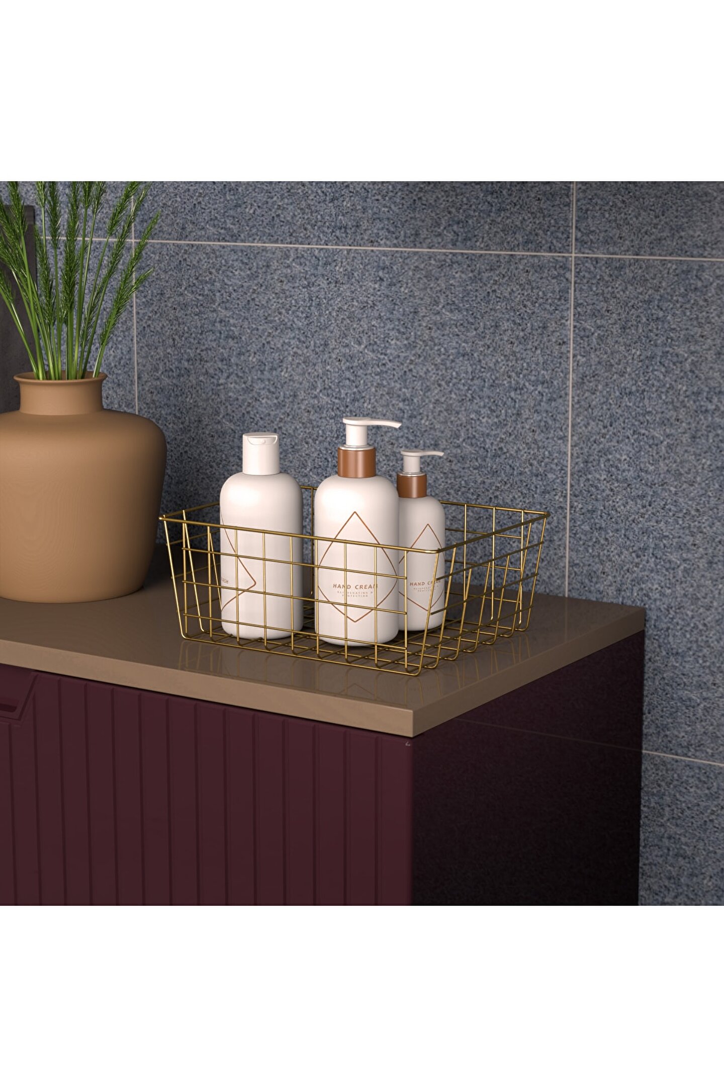 PAKET İÇERİĞİ: 1 ADET GOLD Tel Sepet Organizer ; Metal Ferforja Sepet, Masa Üstü Organizer, Organizer Sepet, Düzenleyici Organizer, Dolap İçi Organizer, Tel Metal sepetimiz ile sık kullanılan eşyaları sepette düzenlip kolayca erişebilir ve dağınıklığı toparlayabilirsiniz. Mutfak dolapları, kiler, banyo, tezgâh üstü ve atölyelerinizde ürünümüzü kullanabilirsiniz. Ürünümüz metal telden imal edildiği için sepettinizdeki her şeyi görmenizi sağlar. Çocuklarınızın oyuncaklarını, evcil hayvan malzemelerini, kiler malzemelerini, misafir banyo malzemelerini, temizlik malzemelerini, ve çok daha fazlasını düzenleyebilirsiniz. ; Ürün Ölçüleri: Genişlik : 28,5 Cm x 22 Cm Yükseklik : 12 cm ;