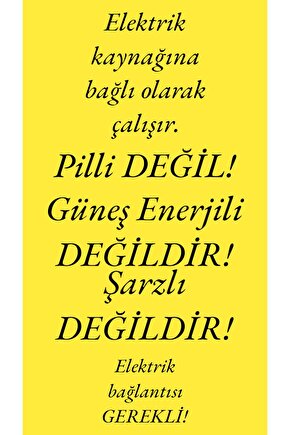 Ürünümüz elektik kaynağına bağlanarak çalışır. Birinci kalite sert plastikten üretilmiştir. IP 65 Koruma sınıfından, dış mekan için kullanıma uygundur. Yağmur, kar ve güneş gibi mevsimsel şartlardan etkilenmez. İçindeki glop 20'liktir.