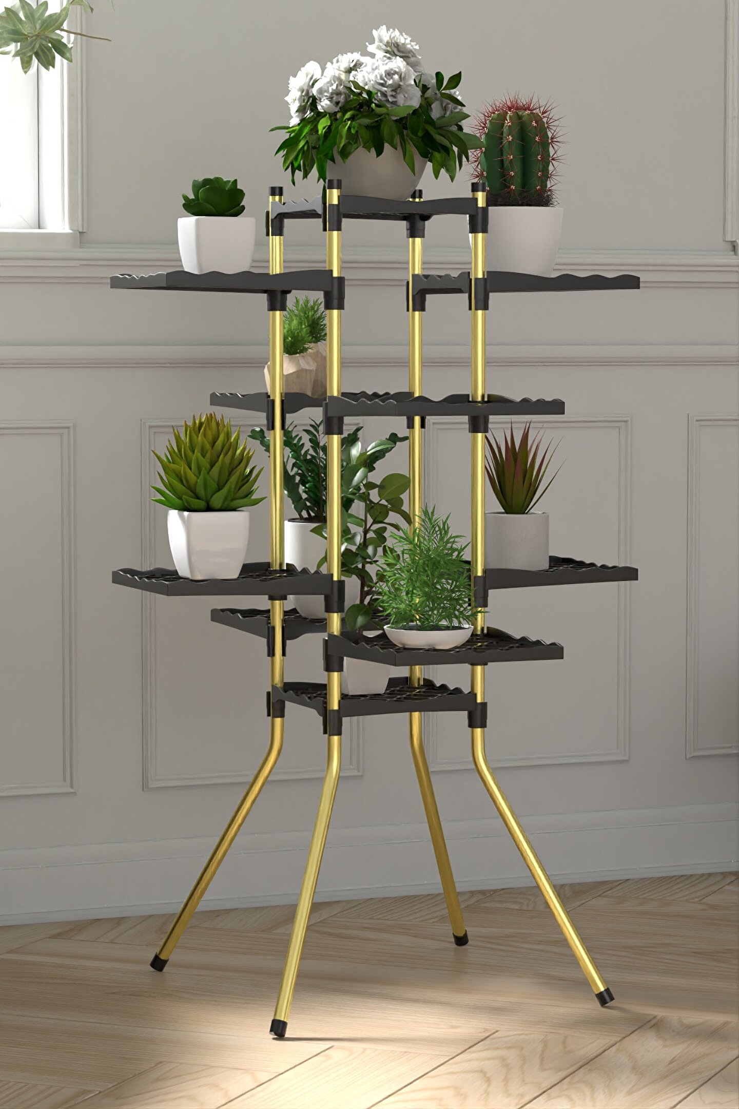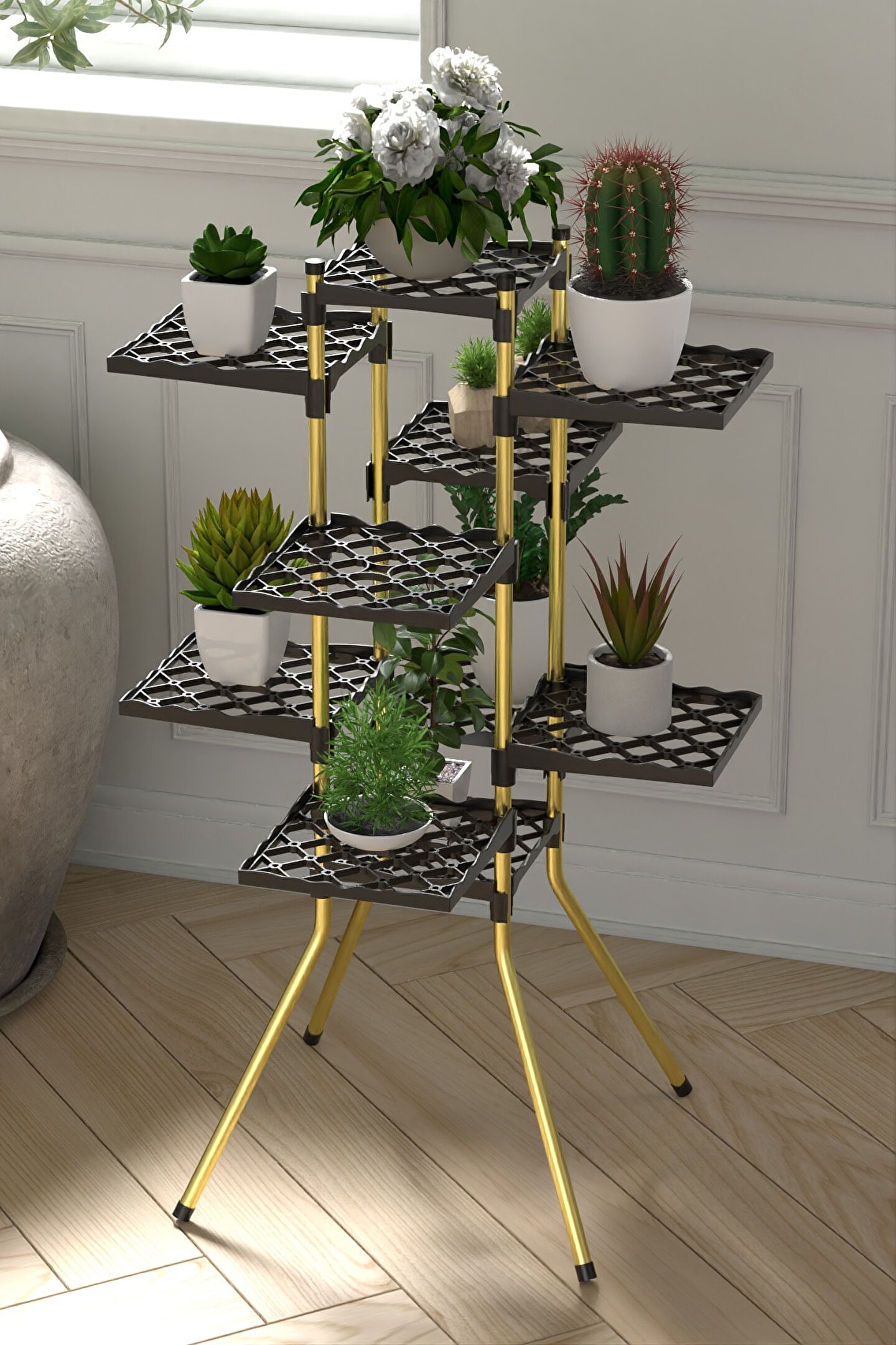 fullreyon Mundo 10 Raflı Dekoratif Çiçek Standı Çiçek Bahçesi Saksı Standı