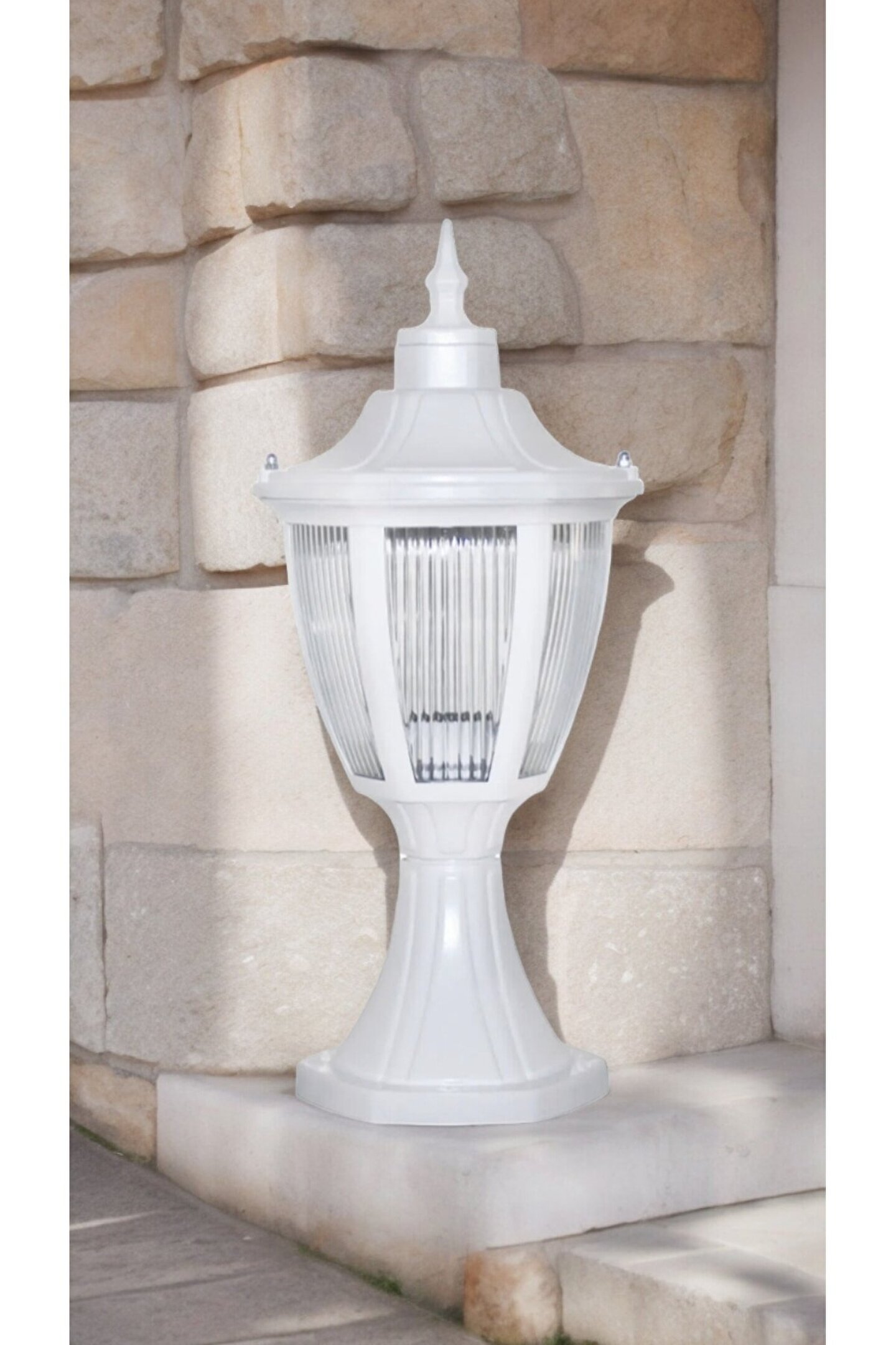 Dayanıklı plastik malzeme kullanımı sayesinde uzun ömürlü ve kolay temizlenebilir bir yapı sunar; Rustik tasarımı ile bahçe ve dış mekan dekorasyonunuza otantik bir dokunuş katar; E27 duy tipi, geniş bulunabilirlik ve kolay ampul değişimi sağlar;