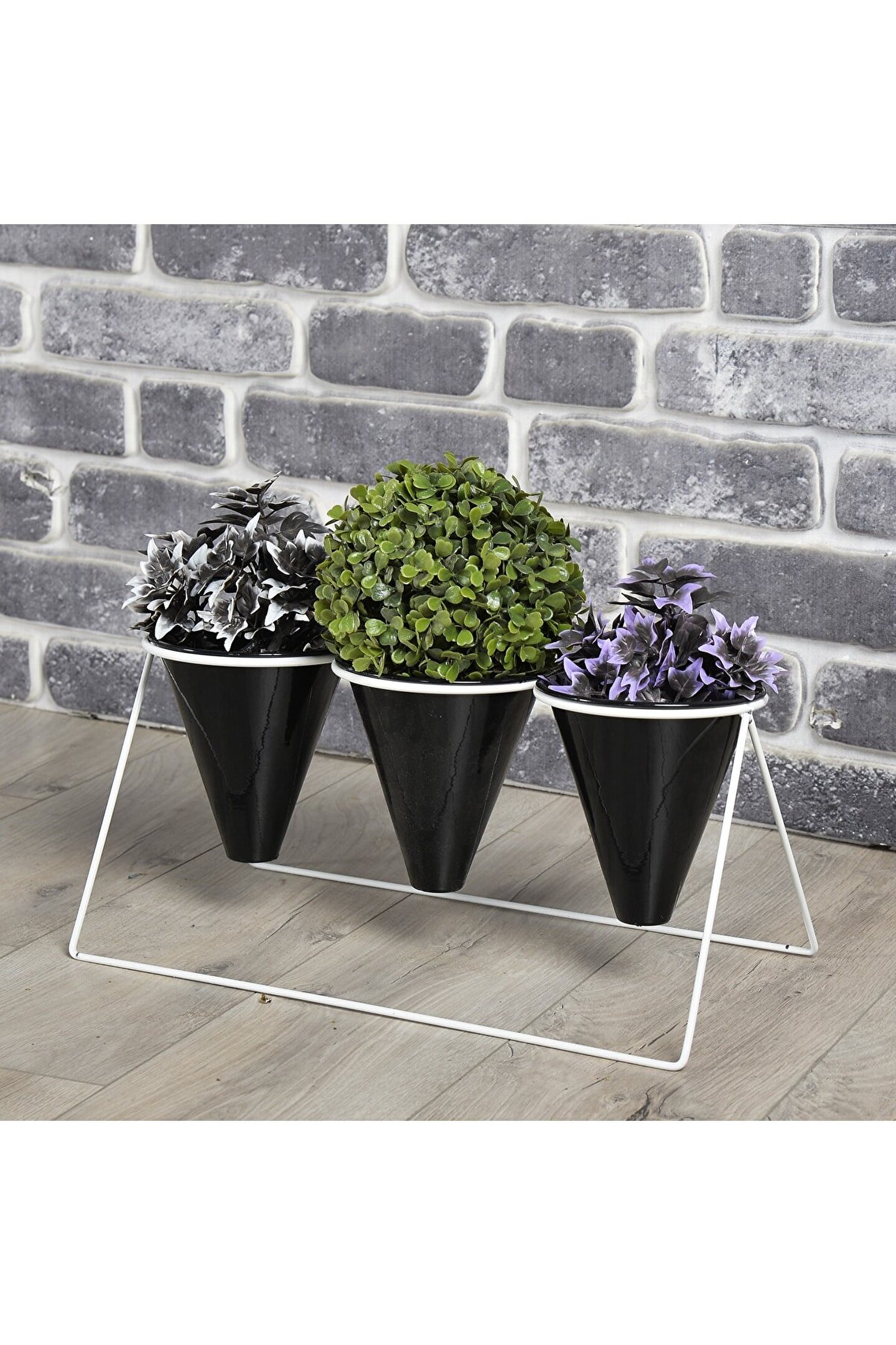 fullreyon Vıpclass 3 Saksılı Metal Çiçek Standı - Saksılar Dahil - Vbs