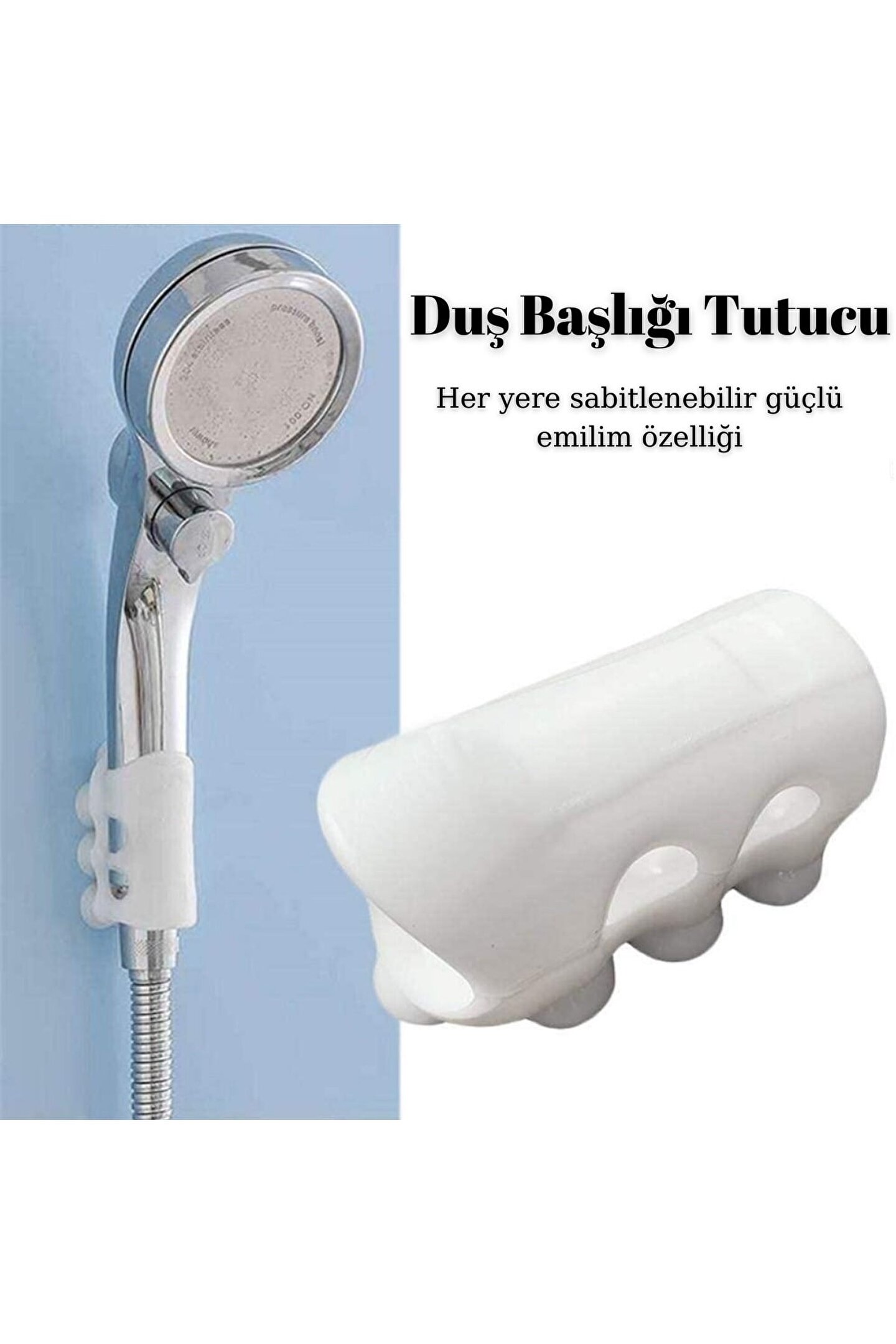 Su Geçirmeyen Dayanıklı Kancalı Banyo Duş Başlığı Askı Tutucu Silikon Güçlü Vantuz Vakum Aparatı Banyoda hayatınızı kolaylaştıran bir üründür. Duvar yüzeylerine zarar vermeden güçlü bir şekilde yapışır. Ürünün Özellikleri Güçlü silikon malzeme sayesinde duvar yüzeyinden düşmez Çok amaçlı olarak kullanılabilir. Banyoda farklı yükseklikler için uygundur. Kurulumu kolay ve alet gerektirmez. Pürüzsüz yüzeylerde kullanılır. Yıkanabilir ve yeniden kullanılabilir. Kullanım Alanları Banyonun farklı yüksekliklerinde kullanıma uygundur. Havlu askılığı olarak kullanılabilir. Duvar askılığı olarak kullanılabilir. Giysilerinizi asabilirsiniz. Paket İçeriği 1 x Duş Vantuz Tutucu Ürün Ölçüleri En 4 cm Boy 7 cm Yükseklik 1 cm