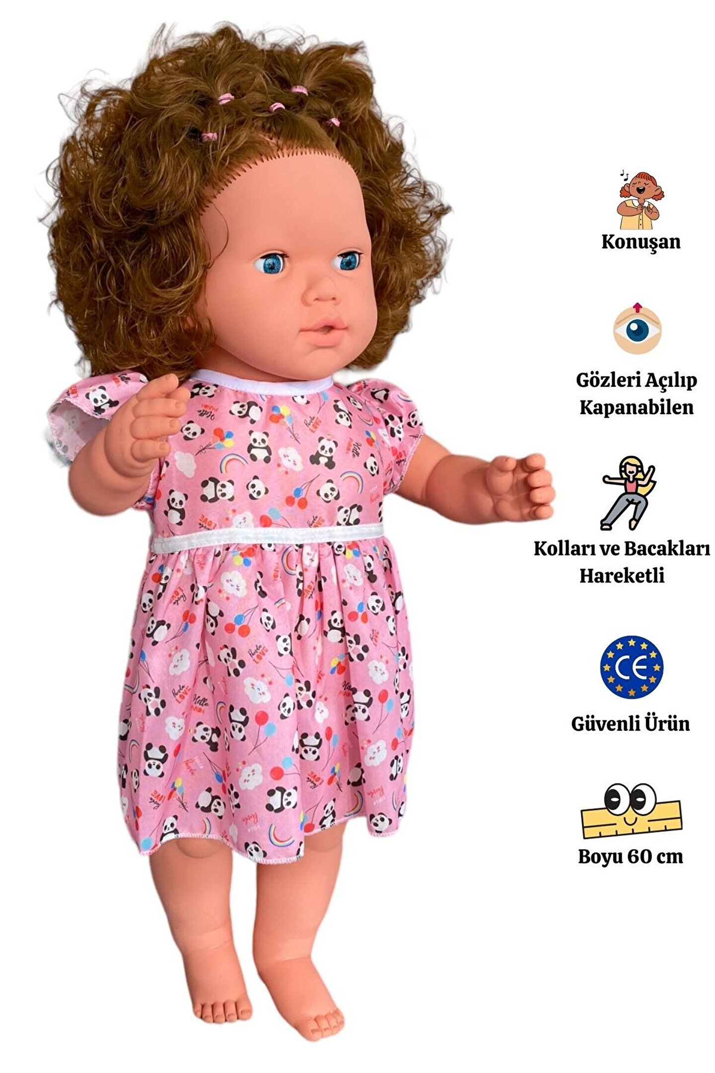 Oyuncak Büyük Boy Türkçe Konuşan Kahverengi Saçlı Et Bebek Sesli 60 cm