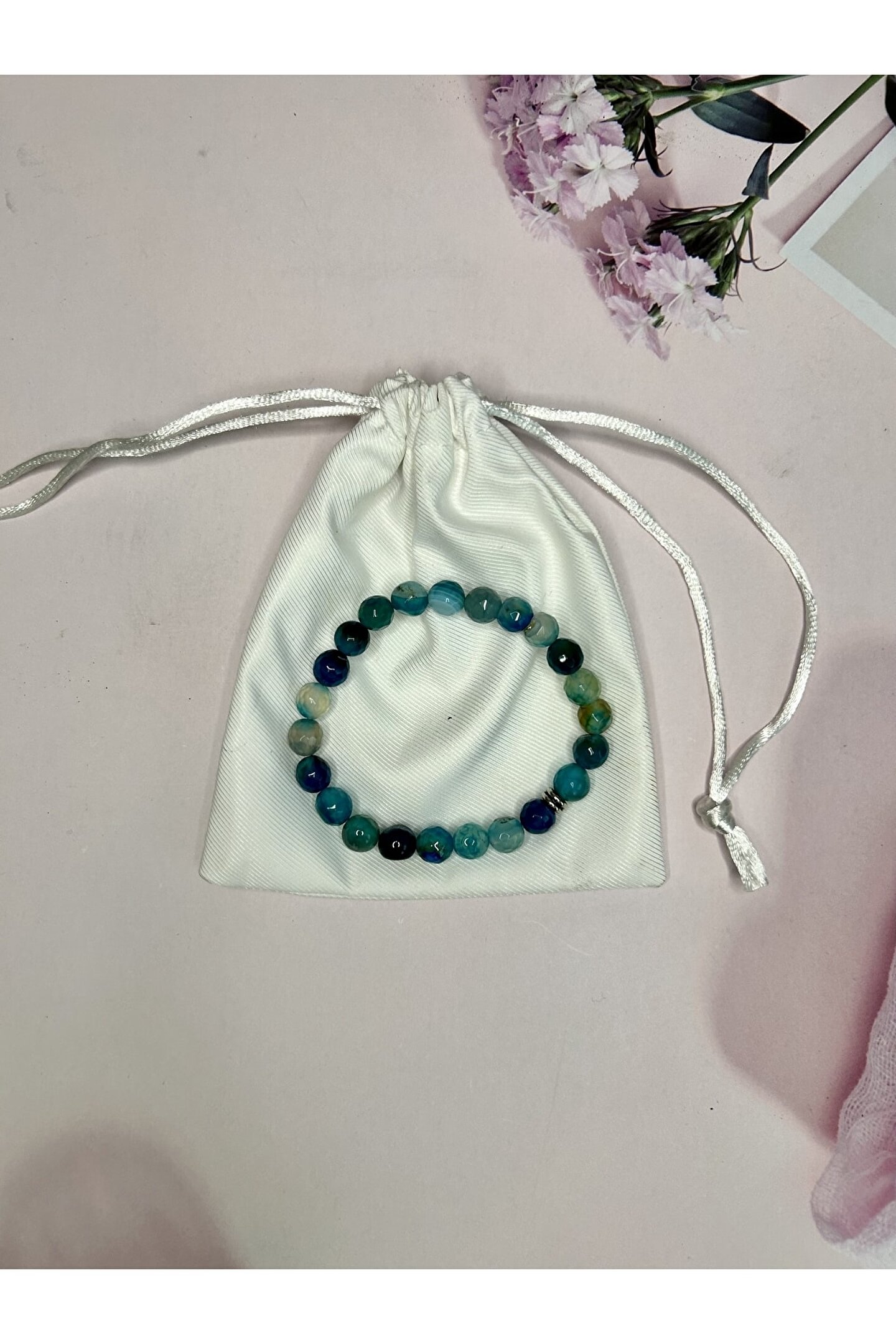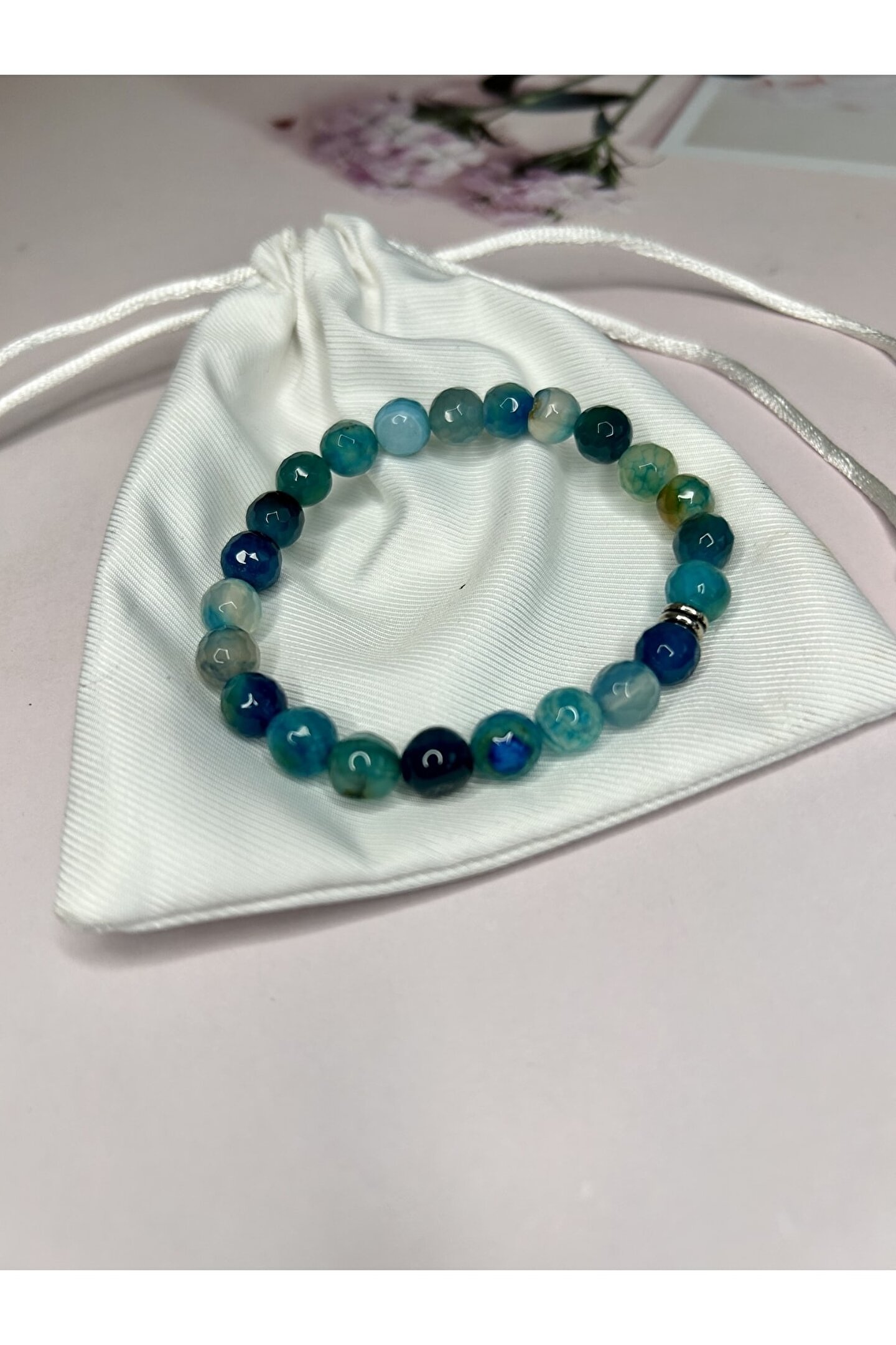 %100 orijinal ve sertifikalı akik doğal taş bileklik, her bir bileklikte bulunan benzersiz desen ve renklerle dikkat çeker; Doğal akik taşı, hem şıklığı hem de zarafeti temsil eder; her türlü kıyafetle uyum sağlayarak stilinizi tamamlar; Mavi akik taşı, bileklikte kullanılan diğer taşlarla mükemmel bir uyum içinde olup, göz alıcı bir görünüm sunar; Doğal taş bileklik, el yapımı olmasıyla öne çıkar ve her bir bileklikte bulunan detaylar, özgün bir dokunuş katmaktadır; Bileklik, uzun ömürlü kullanım için dayanıklı malzemelerden üretilmiştir ve kaliteli işçiliğiyle öne çıkar;