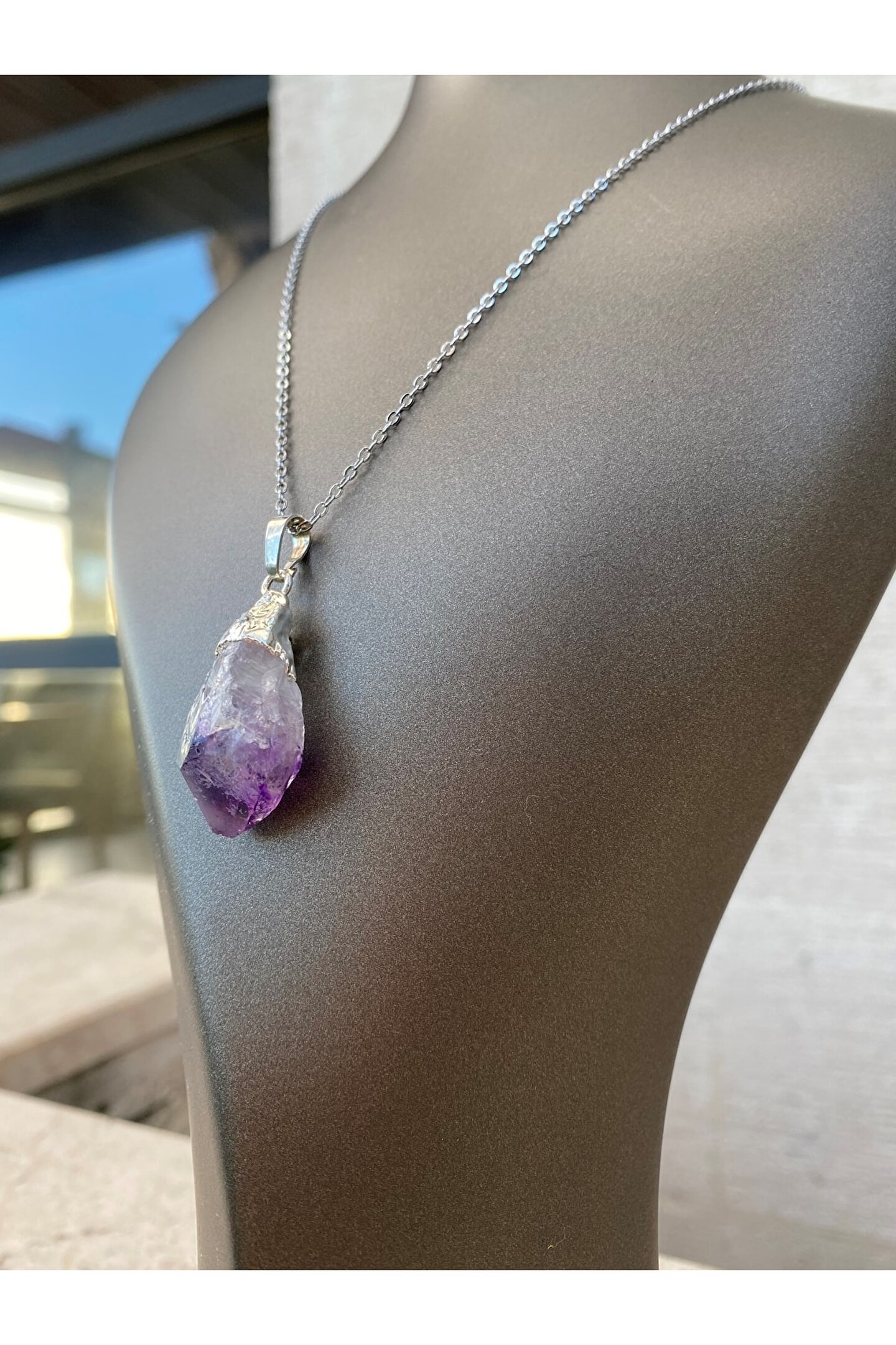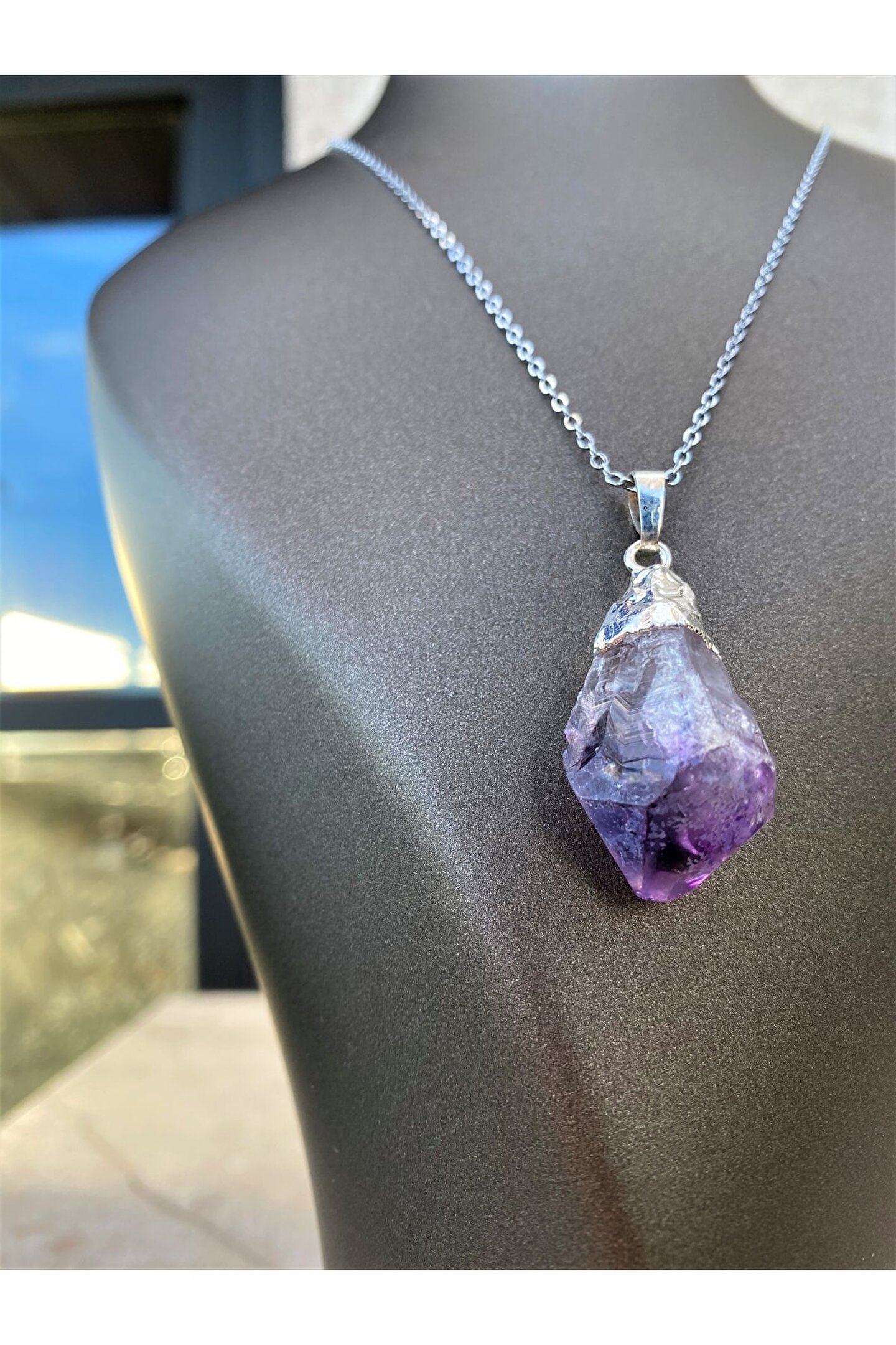 AMETİST “Pozitif Enerji Taşı.” “Ametist ile enerjini sürekli tazele ve canlandır.“ Negatif enerji ve nazara karşı koruyucudur. ; Psikolojik problemlerin azalmasında ve daha dingin daha dengeli bir ruh haline kavuşmanız için kullanılır. ; Takıntı ve endişeleri azaltır. ; O yüzden Merkür gezegeninin taşı olarak bilinir. ; Odaklanmayı sağlar. ; Meditasyonlarınızda kullanabilirsiniz. ; En bilindik ve en faydalı doğal taşlardan birisidir. ; (Doğal taşınızı adaçayı ile tütsüleyip kullanmaya başlayabilirsiniz. ; 15 günde bir aynı işlemi yaparak taşınızın enerjisini temizlemelisiniz.) Zincir uzunluğu 28 cm.;