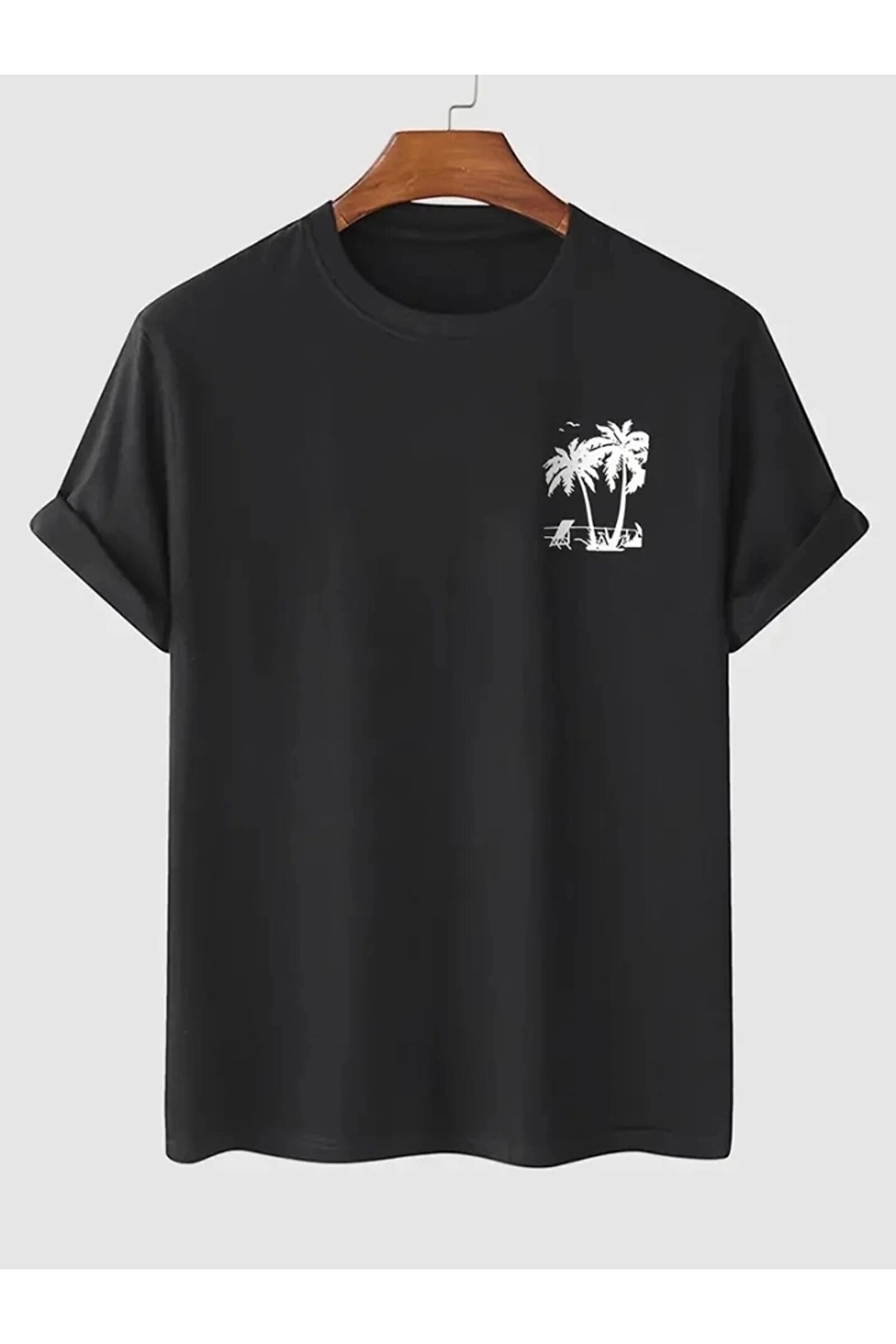 gelirr Baskılı Oversize Bisiklet Yaka T-shirt - Siyah