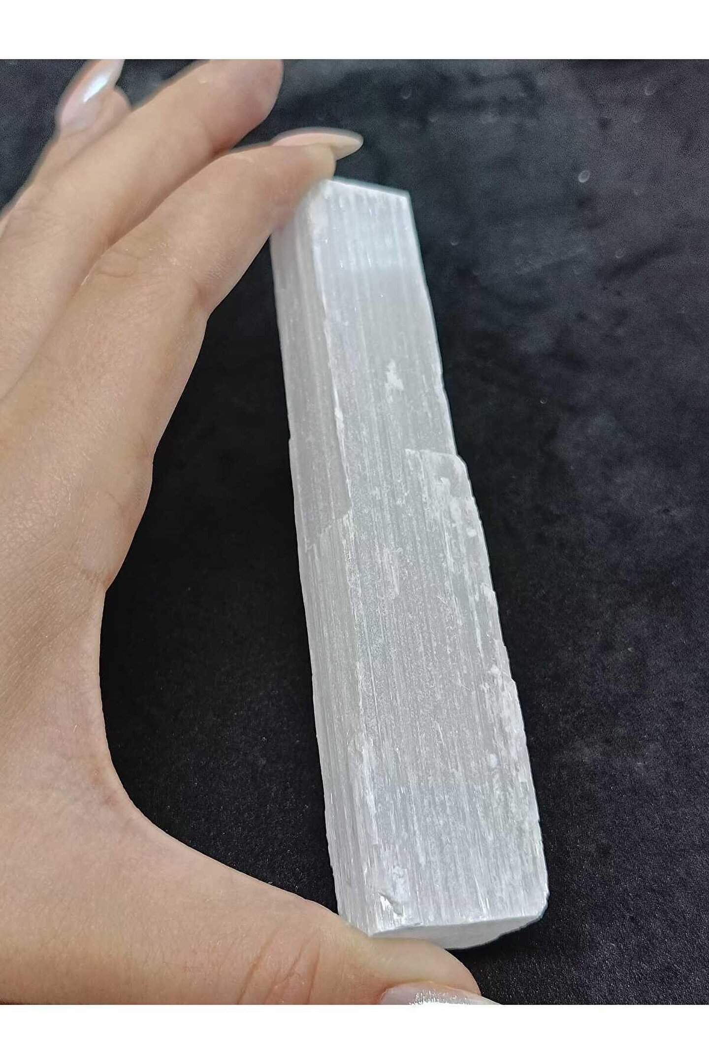 Doğal taş materyali ile üretilmiş, doğa severlerin beğenisine sunulan selenit çubuk, ev ve ofis dekorasyonunuza doğal bir dokunuş katıyor; 80; 90 gram ağırlığındaki bu şık ve zarif obje, hem estetik hem de işlevsel bir aksesuar olarak dikkat çekiyor; Selenit taşı, benzersiz desenleri ve renkleriyle her türlü dekorasyona uyum sağlayarak mekanınıza sıcaklık ve huzur katıyor;
