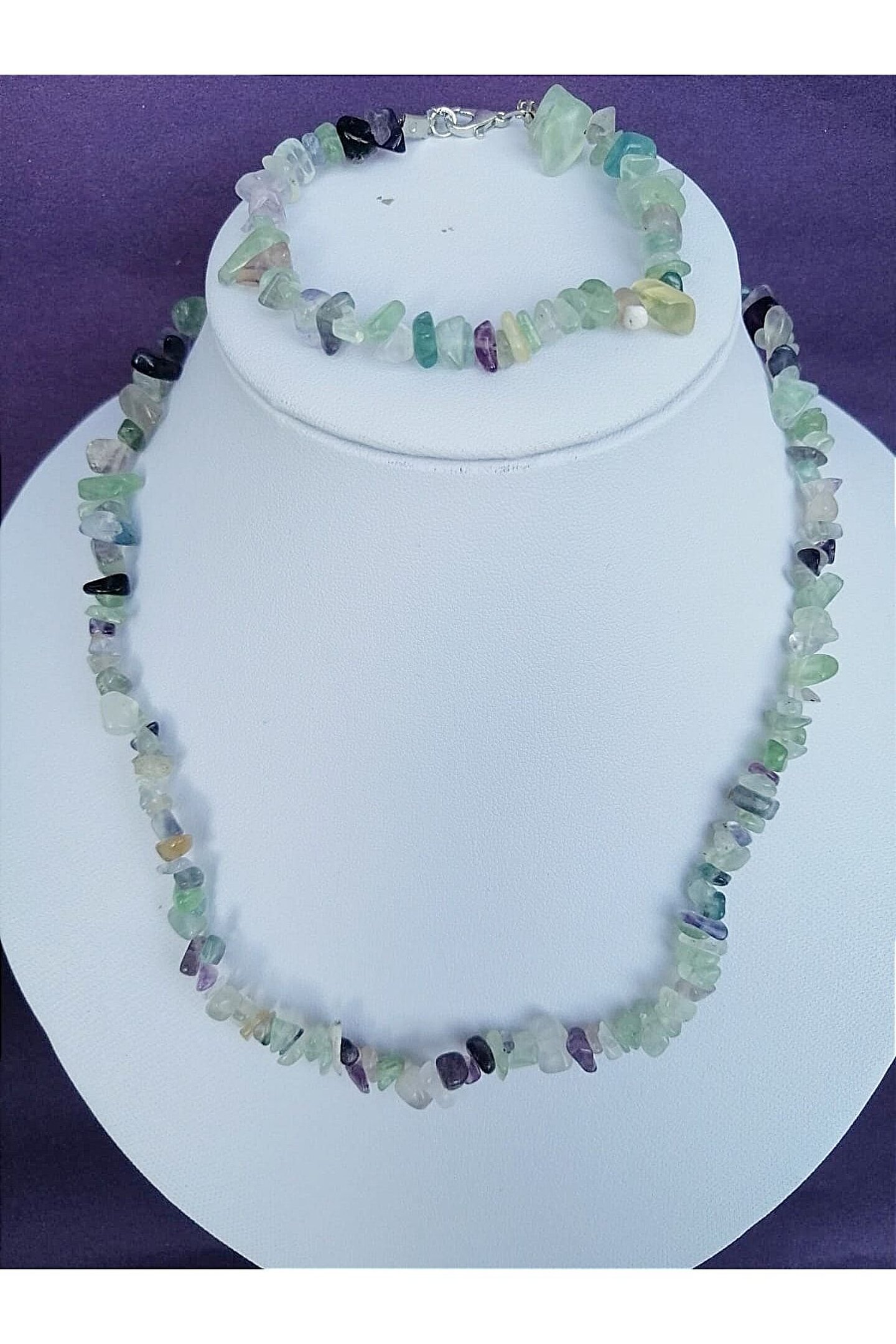 Doğal taş kullanımı sayesinde her parça benzersiz ve otantik bir görünüm sunar; Florit kolye ve bileklik seti, kırık doğaltaşın eşsiz dokusuyla dikkat çeker; Bu takı seti, hem günlük kullanım hem de özel günler için ideal bir aksesuar seçeneği sunar; Doğal taşların zarifliği ve estetiği, her kıyafetle uyum sağlayarak stilinizi tamamlar;