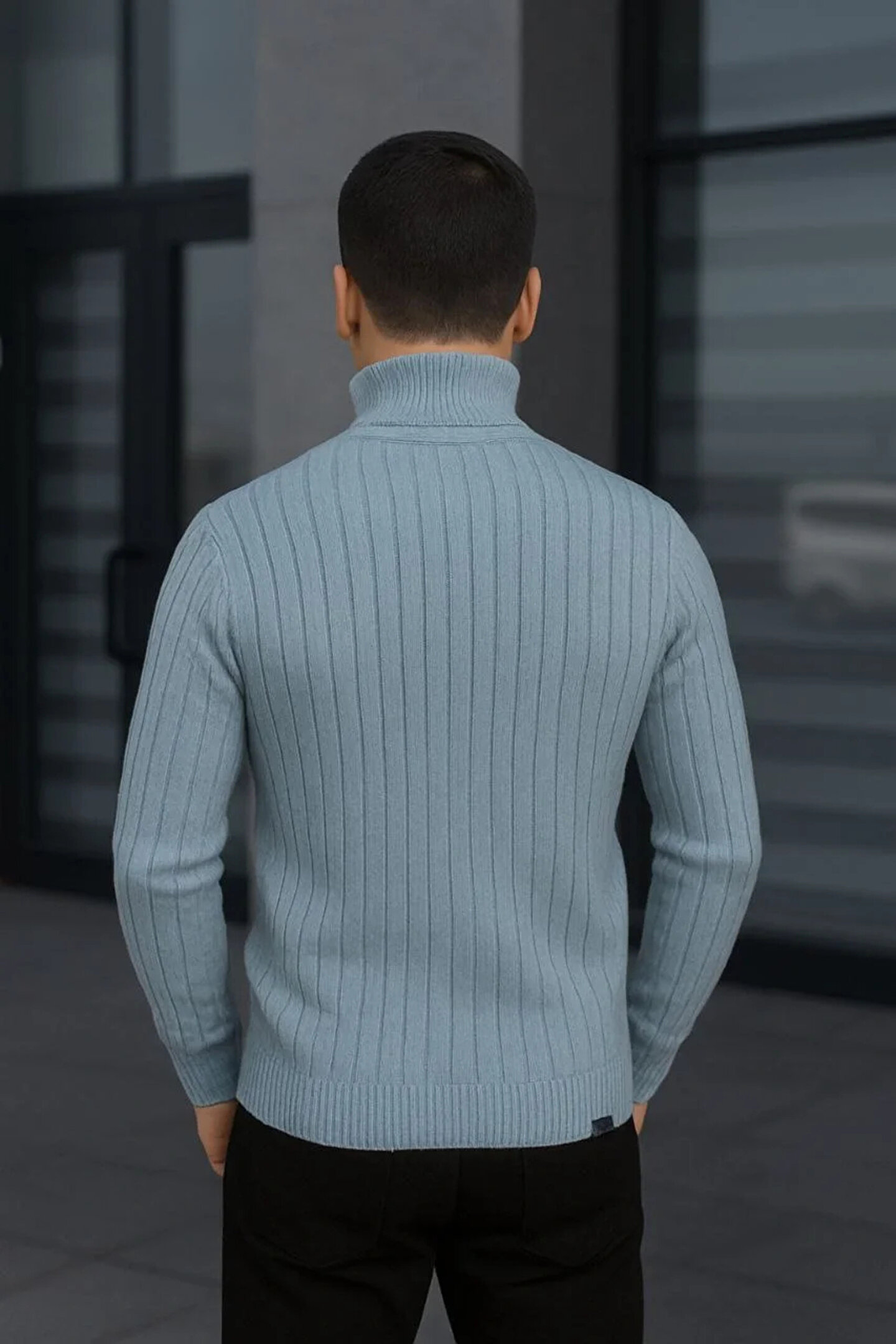 GENCULUS Erkek Fitilli Triko Kazak 2li Set Bebek Mavisi Siyah Regular Balıkcı Yaka Tam Boğazlı Triko Seti Mo