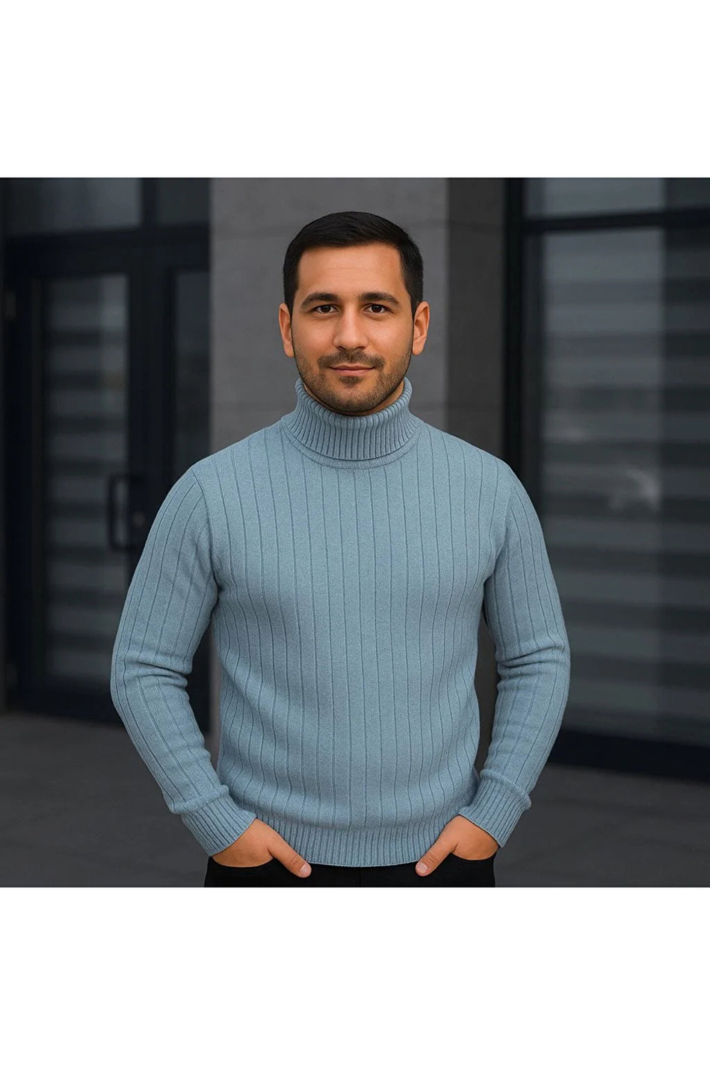 GENCULUS Erkek Fitilli Triko Kazak 2li Set Bebek Mavisi Siyah Regular Balıkcı Yaka Tam Boğazlı Triko Seti Mo