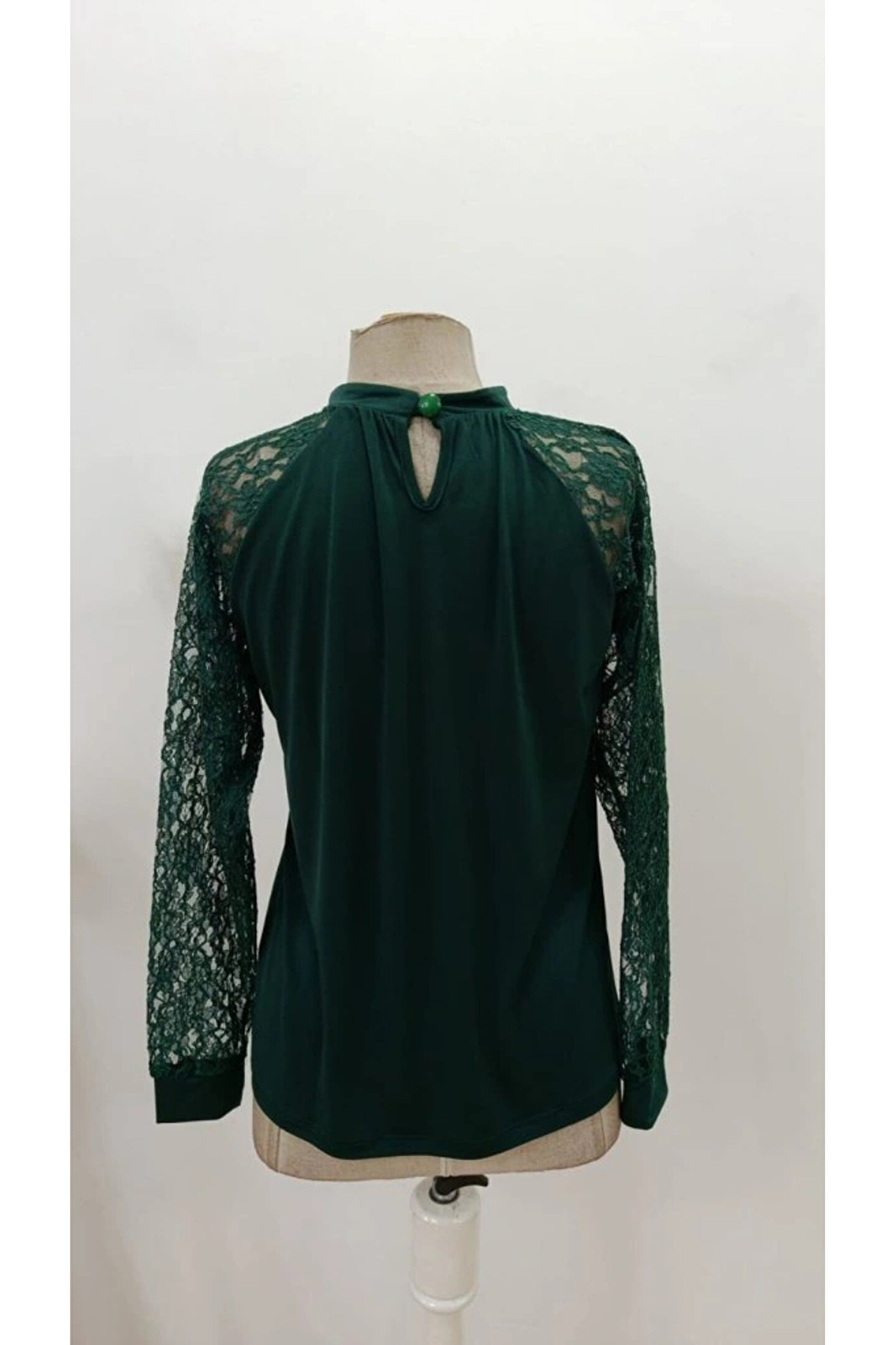 GENCULUS Kadın Uzun Dantel Kollu Yuvarlak Yakalı Sandy Bluz