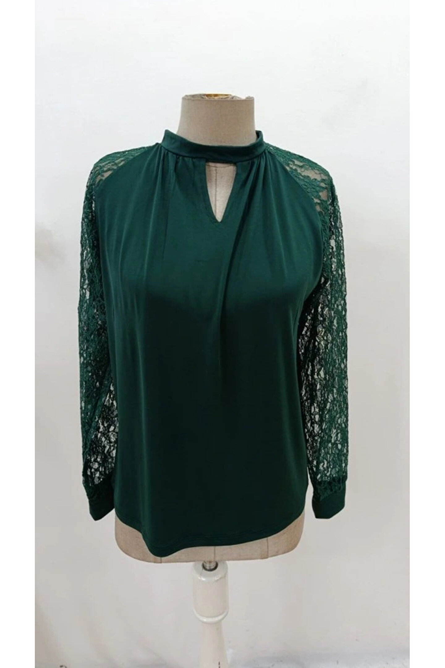 Kadın Uzun Dantel Kollu Yuvarlak Yakalı Sandy Bluz